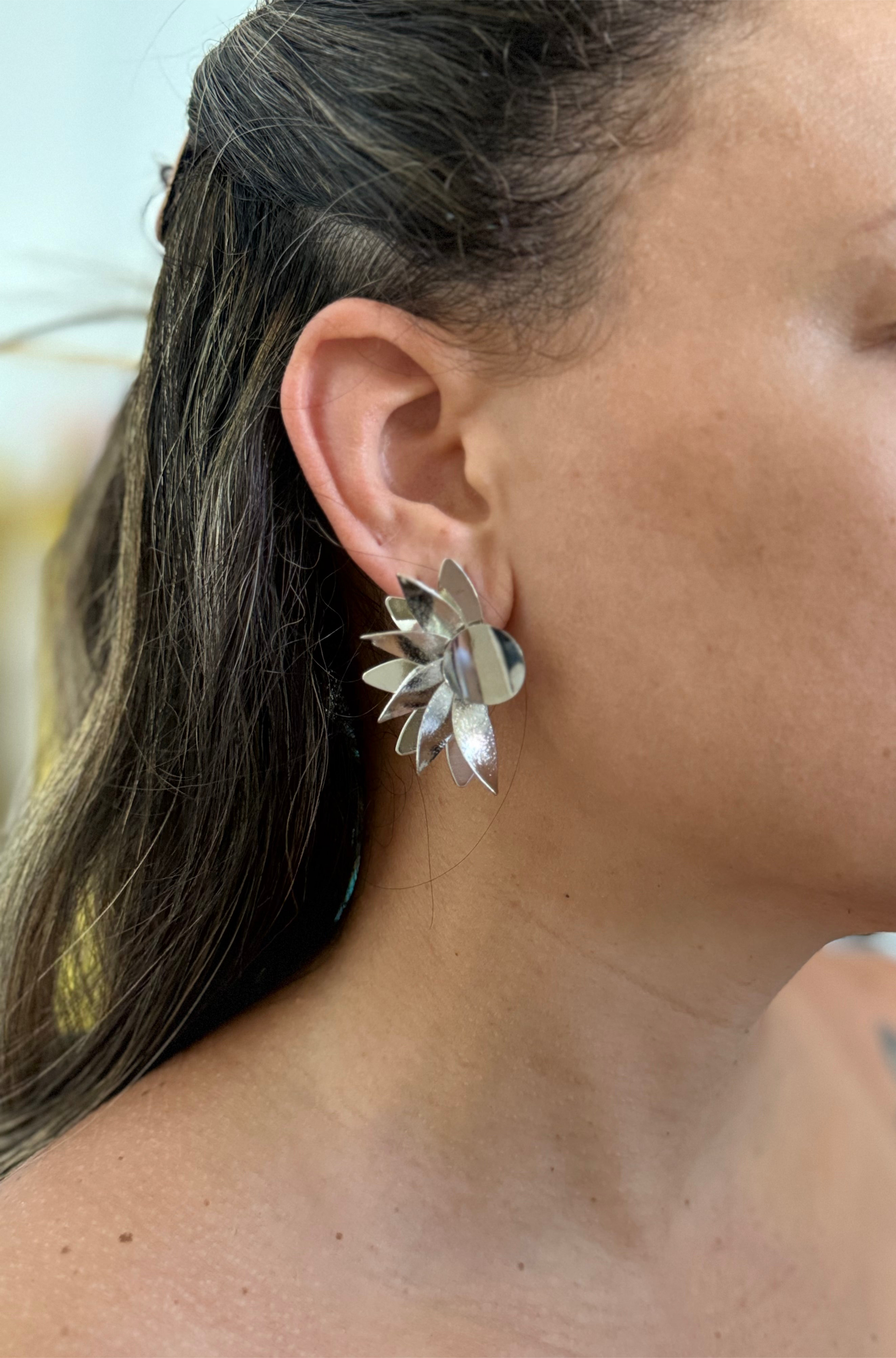 ARGENTA | Rhodium-Plated EarringsSculptural design. Shiny style. Argenta is a statement piece with an artistic soul: its modern floral shape in rhodium plating reflects light and attitude from any angle. Perfect for those who are not afraid to stand out with elegance, these earrings are the ideal accent to elevate your days and nights. ✨ The flower that blossoms with your style.