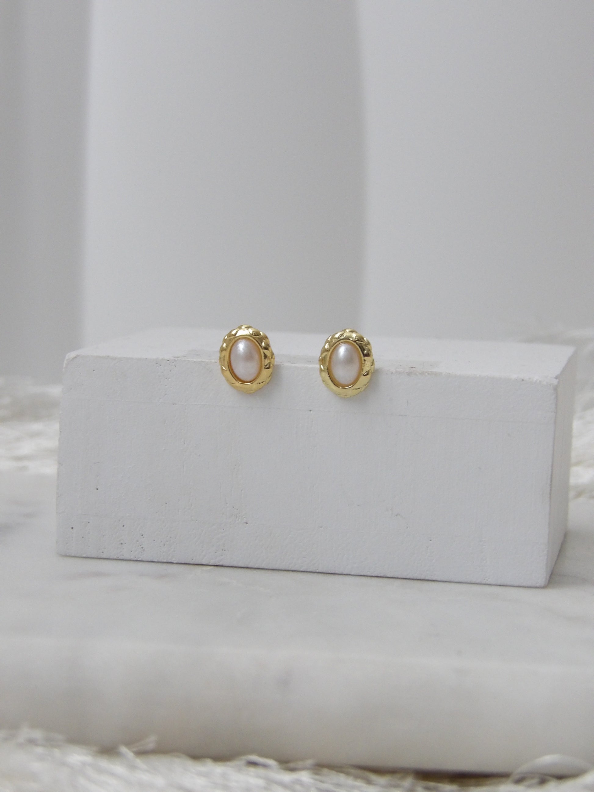 Elevate your everyday elegance with the Auria Pearl Studs — timeless and refined. In gold-plated rhodium and adorned with luminous pearls, these earrings strike the perfect balance between modern sophistication and classic charm. The sculpted bezel-style setting adds a bold yet graceful touch that makes them a statement piece you can wear on repeat.