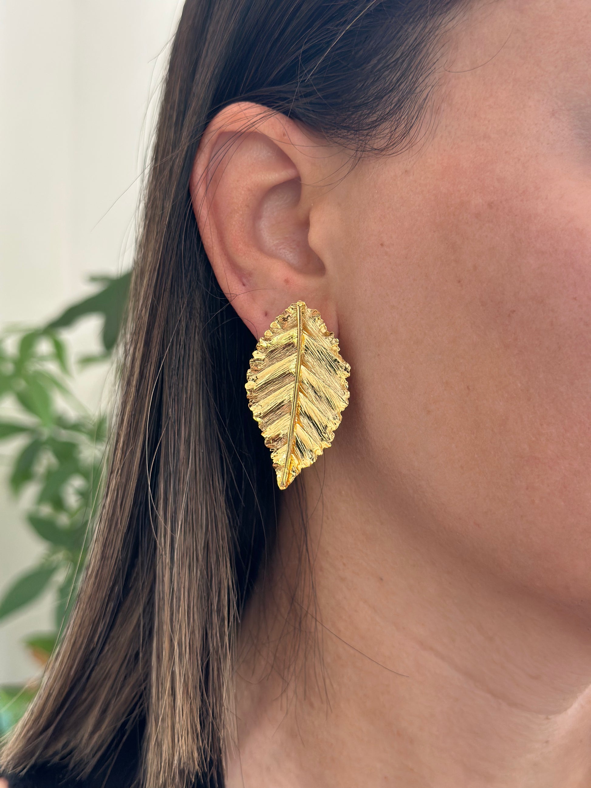 Introducing our AZAHAR BRONZE EARRINGS - the perfect accessory for bold, nature-inspired style! These exquisite earrings feature a unique large leaf design, handcrafted with 24K gold-plated bronze for a luxurious touch. Elevate any outfit with these exclusive, one-of-a-kind earrings.