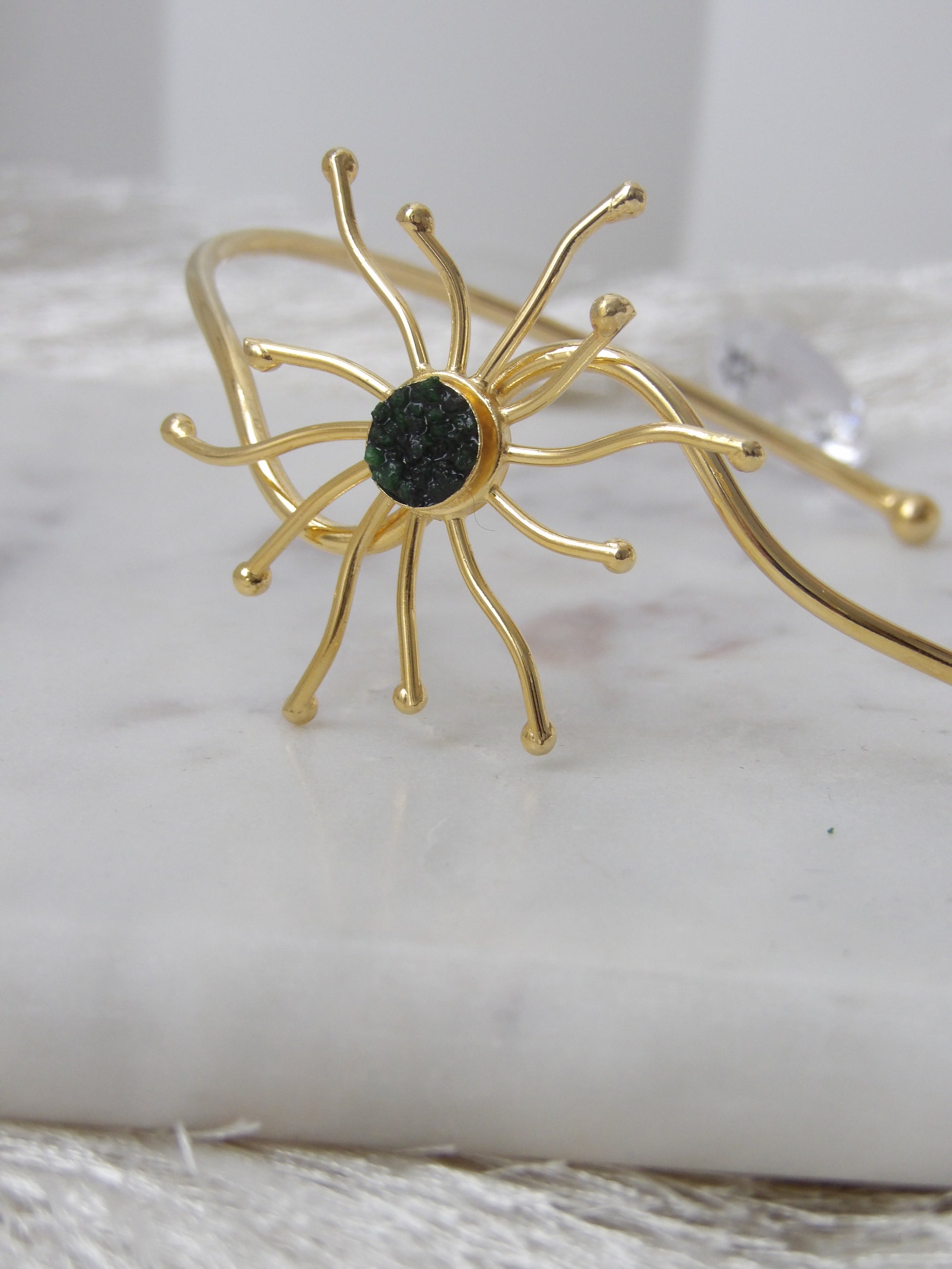 Let your essence shine with the Bastet Arm Cuff — a statement piece inspired by ancient strength and divine elegance. Handcrafted in bronze and plated in gold, this striking design evokes the radiance of the sun with its bold, radiant form. At the center, a natural stone adds a touch of mystery and grounding beauty.
