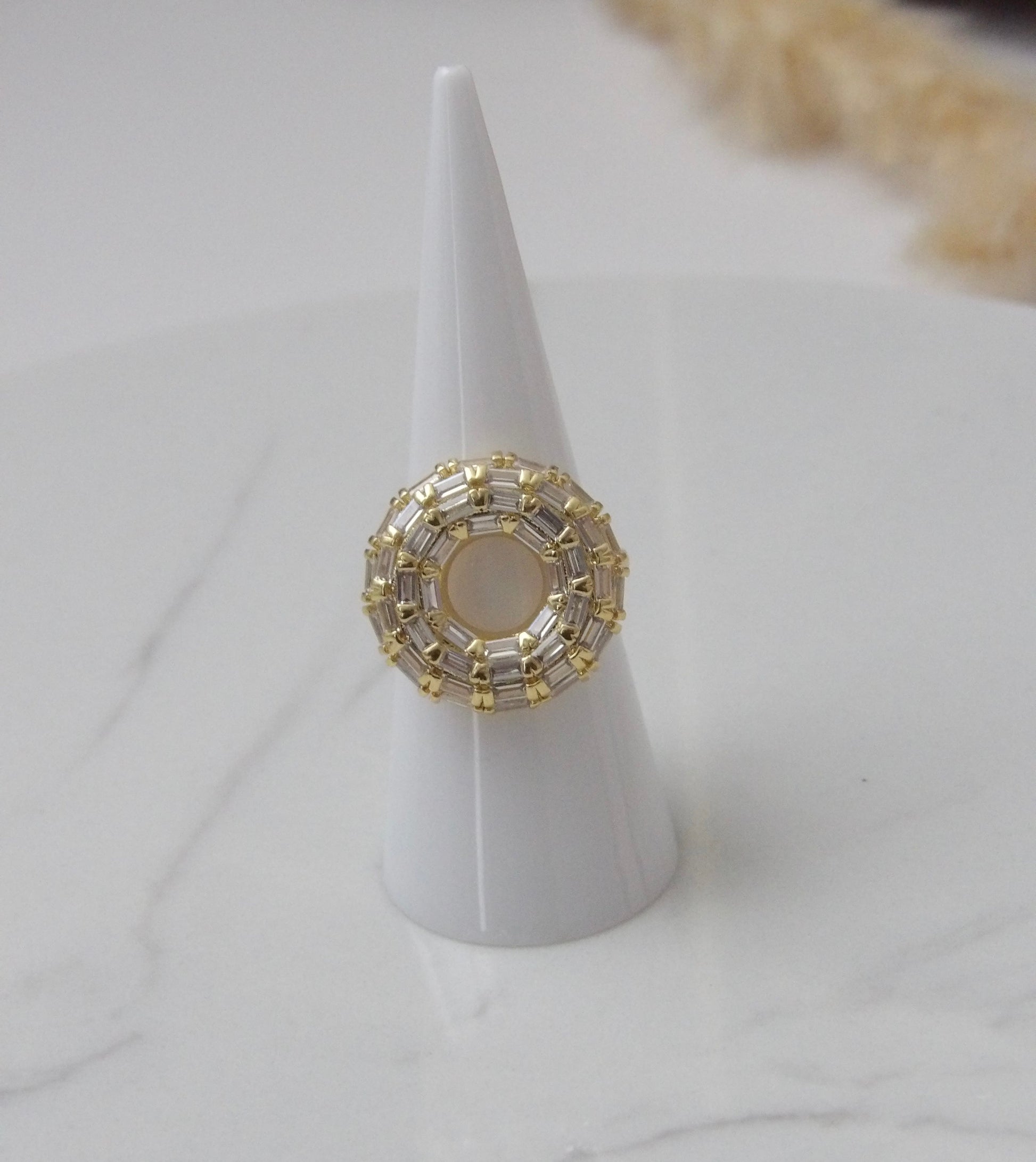 Embrace your daring side with our CANDY GOLD RING! This adjustable rhodium ring boasts a unique style adorned with zircons, adding a touch of luxury to any outfit. Take a risk and stand out from the crowd with this stunning piece.