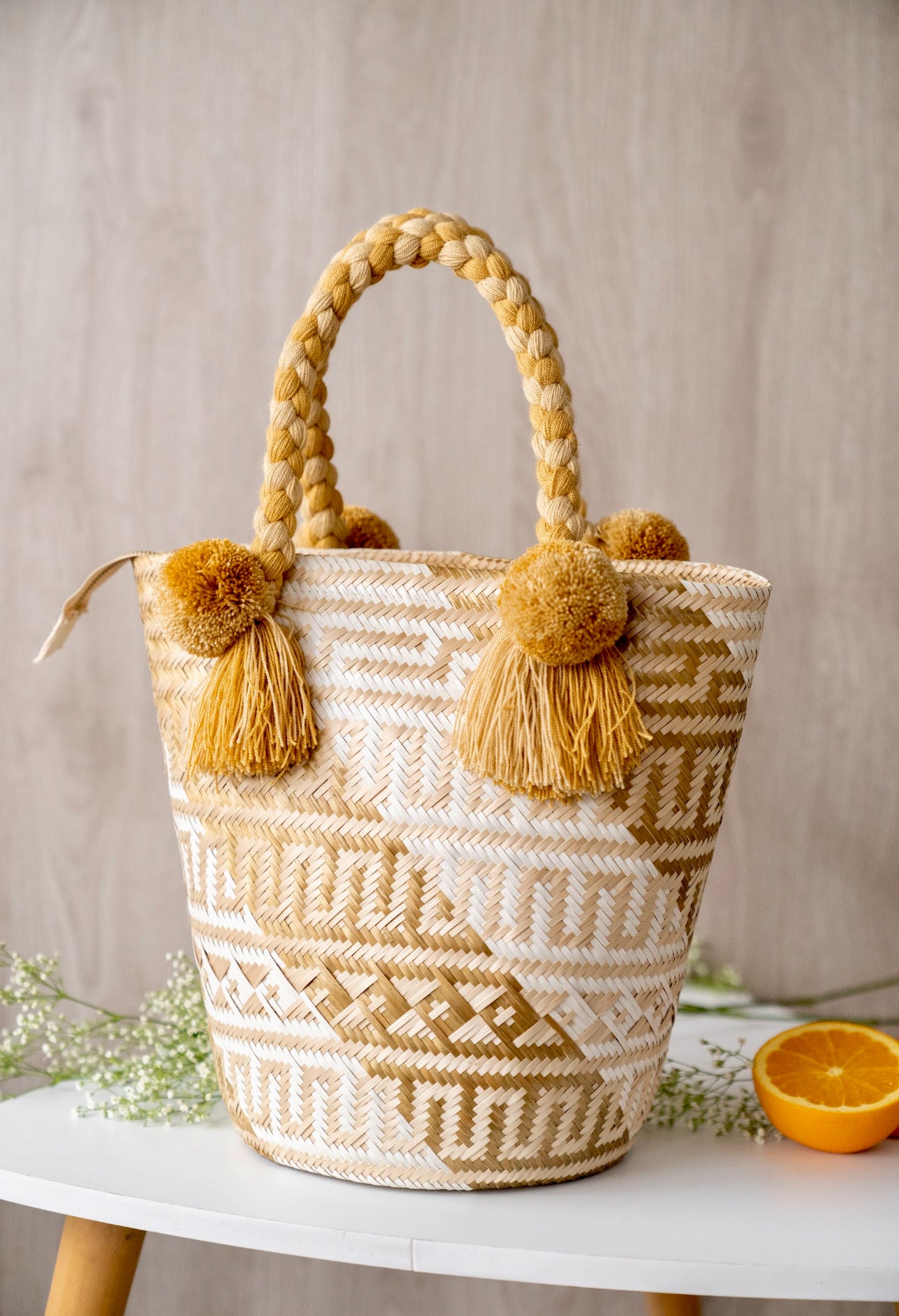 This exquisite MACUIRA DANIELA bag is hand-woven by Wayuu artisans, taking 37 hours of meticulous craftsmanship. The interior is fully lined and features an internal pocket and zipper closure, while the braids and tassels are made of cotton threads. It is perfect and versatile for any occasion, making it a must-have for your wardrobe.