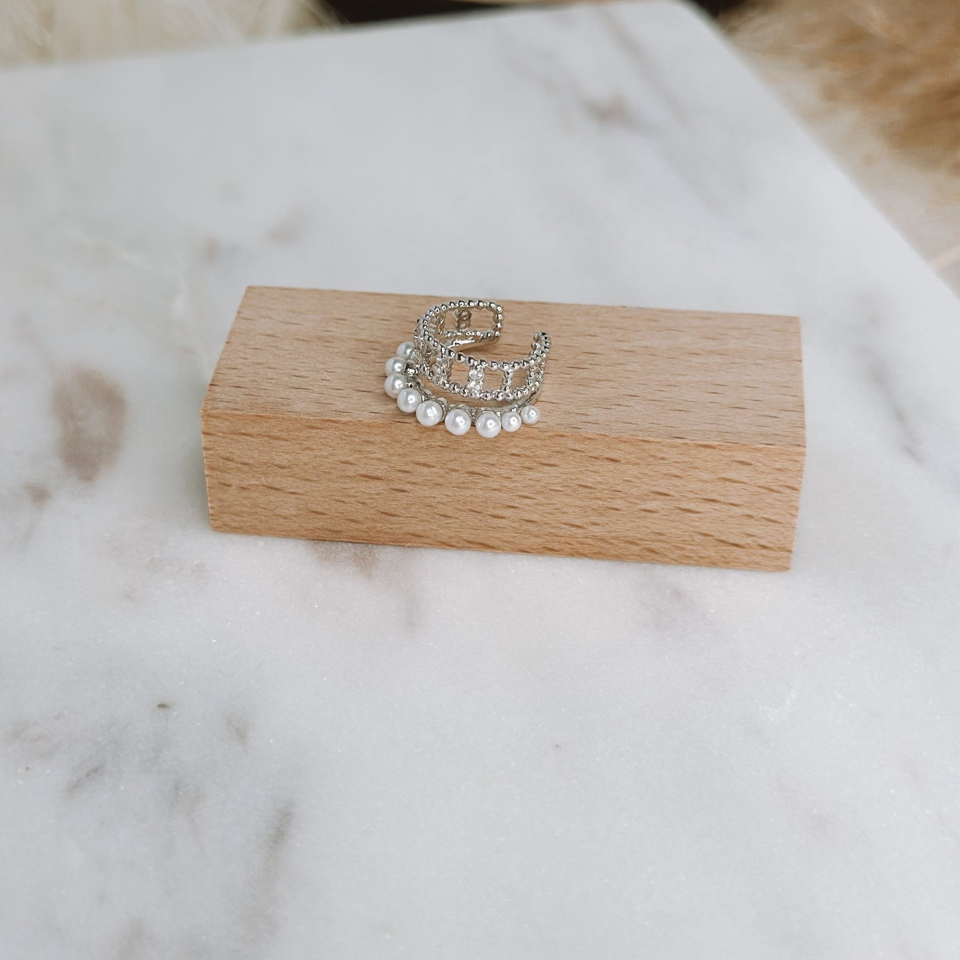 Elevate your style with our DANNA EAR CUFF PEARL SILVER. With a rhodium finish and a chain design featuring elegant pearls, this piece exudes sophistication and luxury. Stand out from the crowd and add a touch of exclusivity to any outfit.
