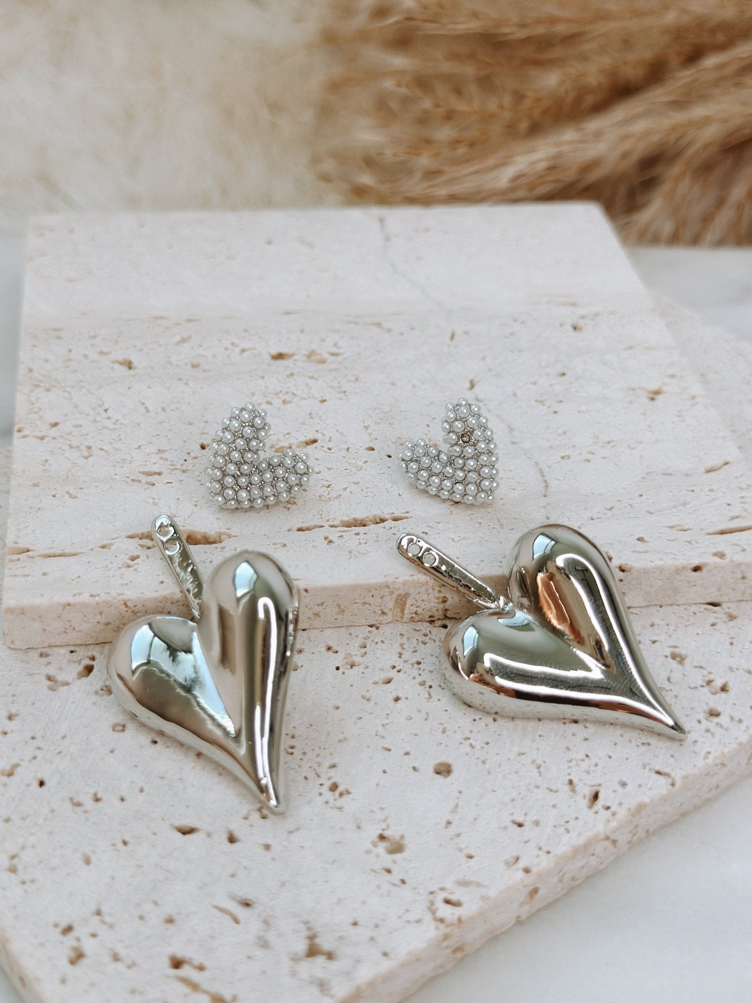 Indulge in luxury with our Doble Heart Duo Silver Earrings. Made with delicate rhodium and adorned with pearl details, these earrings offer two different uses - wear them as a set or separately for a touch of sophistication. Elevate your style with this exclusive piece.