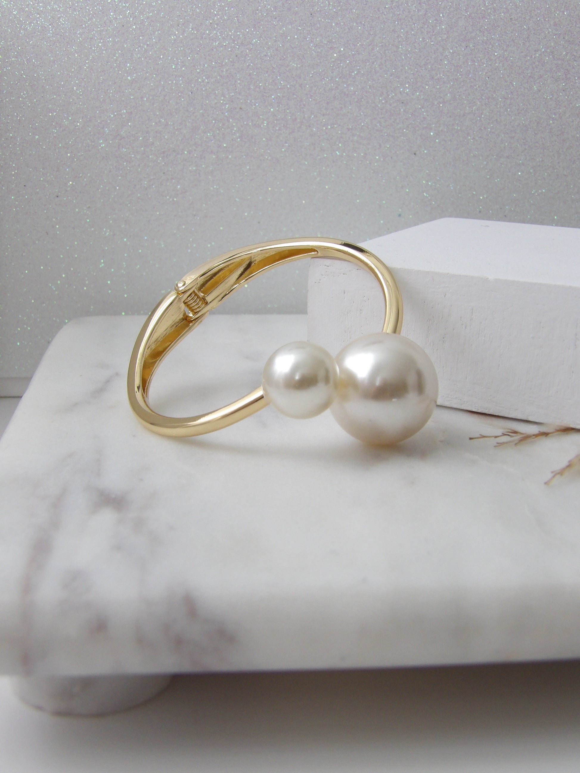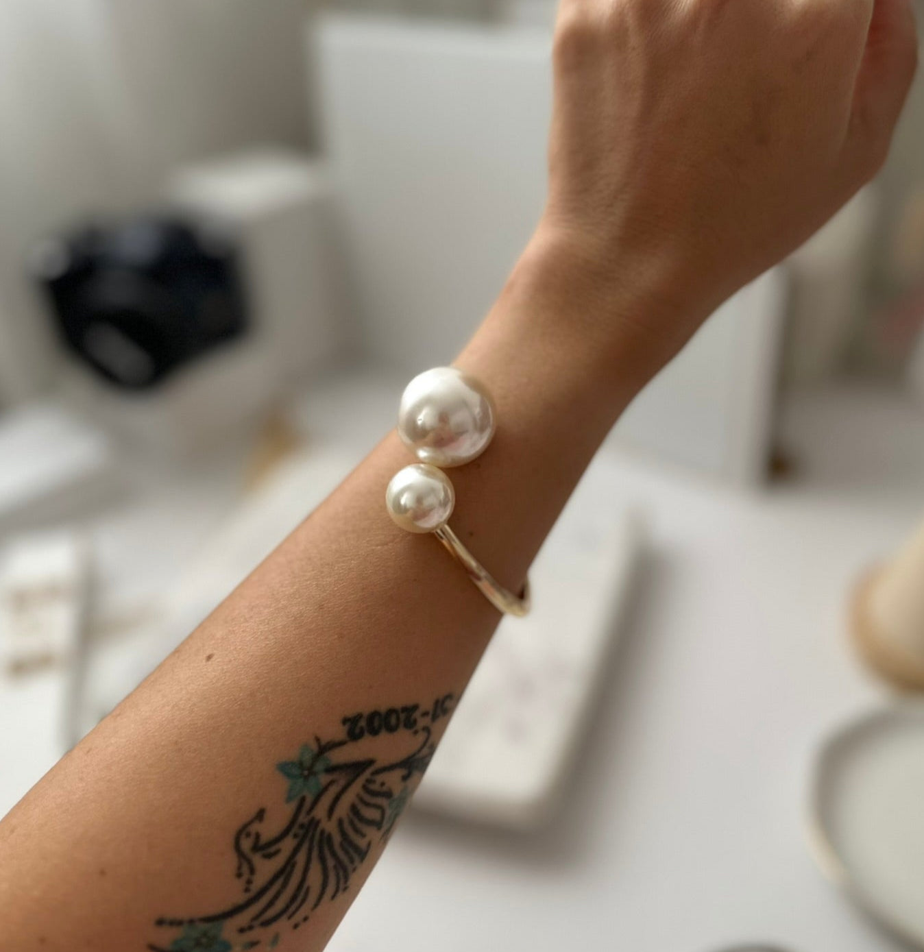 A jewel that captures the essence of timeless luxury. The Oro di Mare bracelet in gold-plated rhodium wraps the wrist with clean and sophisticated lines, crowned by two maxi pearls that evoke the elegance of the sea with a modern sparkle.Perfect for transforming an everyday look into a statement of refined style. Ideal for wearing alone or layered, because when gold and pearls meet... the shine is inevitable.