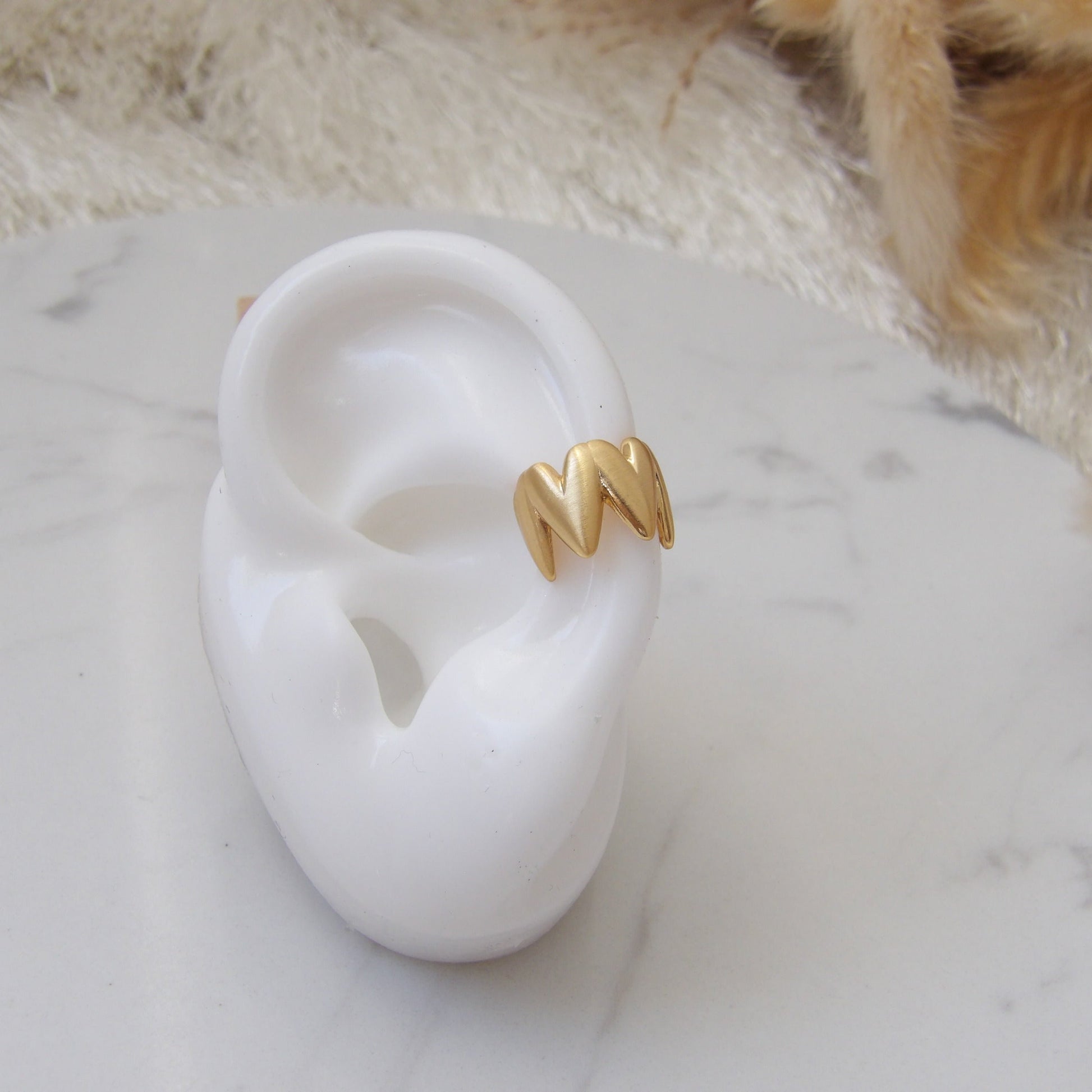 Fall in love with our Evelyn Ear Cuff in gold. This delicate piece features a beautiful heart design, crafted with precision in goldfield. Sophisticated and elegant, it adds a touch of luxury to any outfit. Dare to be different and make a statement with the Evelyn Ear Cuff.