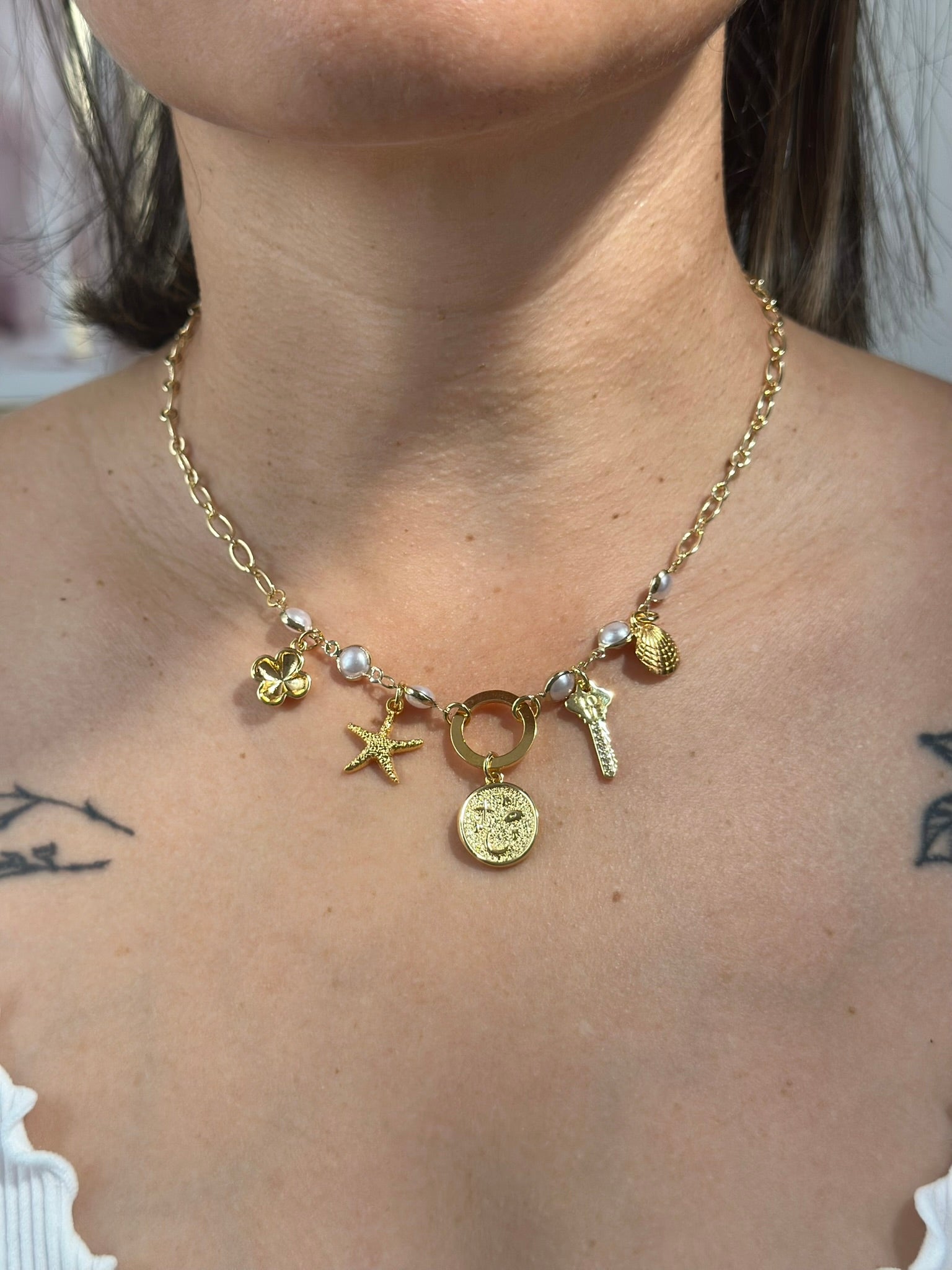Embrace your daring side with the FRESHNESS NECKLACE GOLD. Adorned with fun charms, this rhodium necklace adds a touch of excitement to any occasion. Take risks and stand out with this bold accessory. Perfect for those who crave adventure!