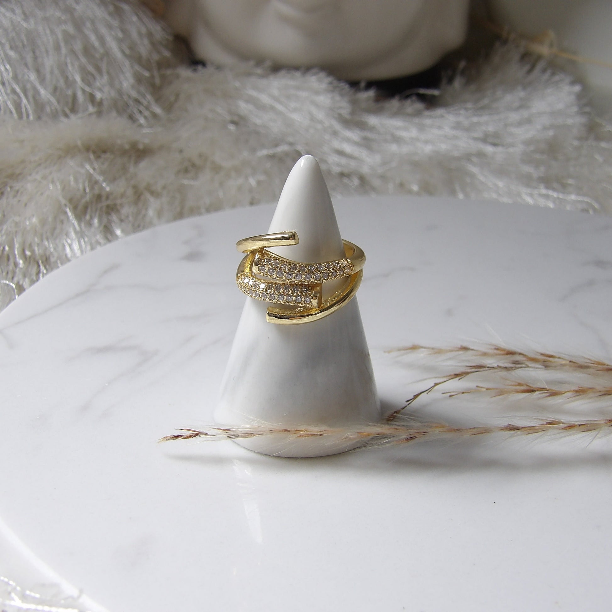 Shine bright like a GAIA GOLD RING! Rhodium plated for durability, this adjustable ring combines elegant design with beautiful craftsmanship. A versatile addition to any outfit, this ring is sure to bring a touch of glamour to your ensemble. (P.S. It's also adjustable, so you can wear it on any finger!)