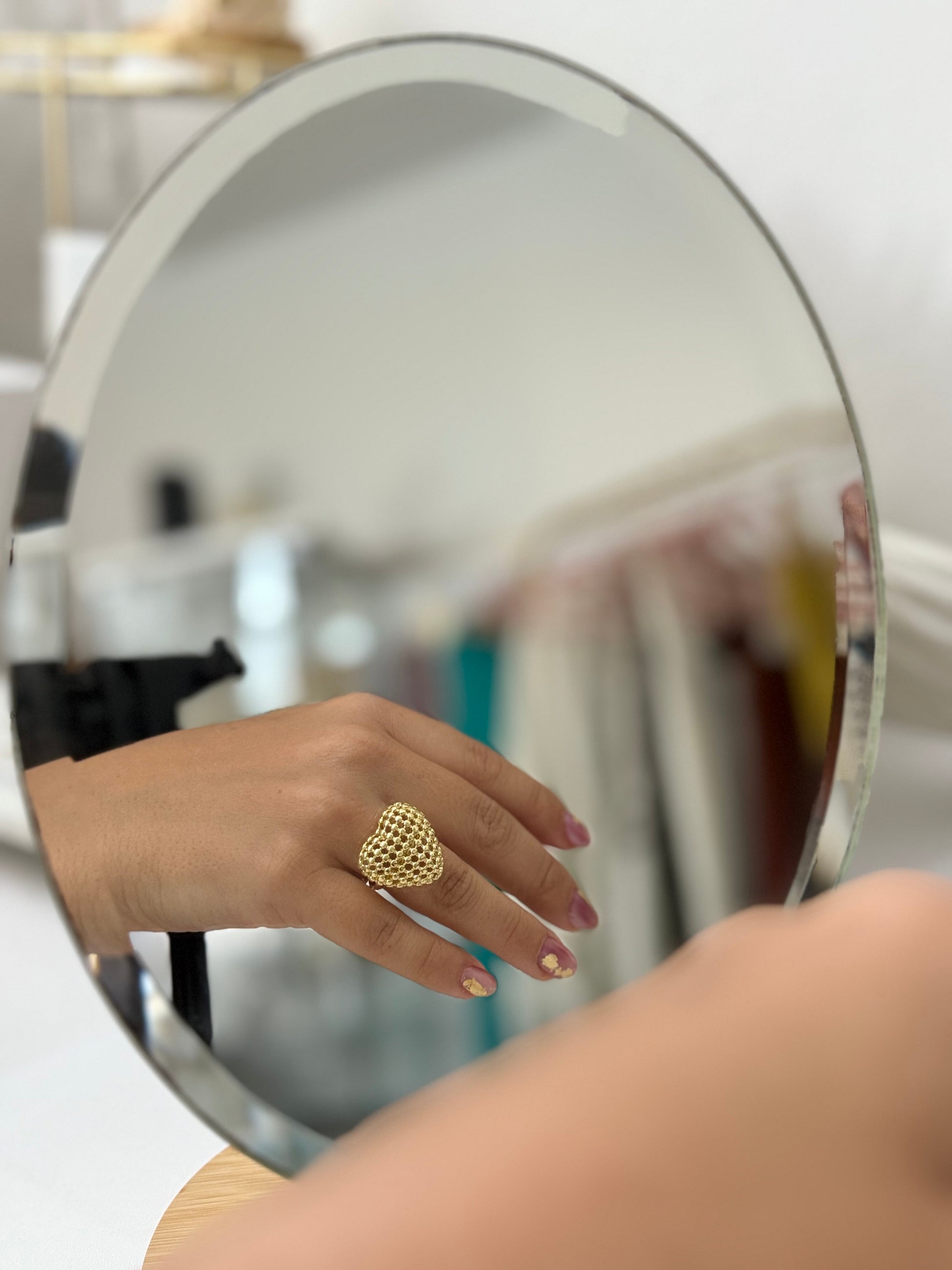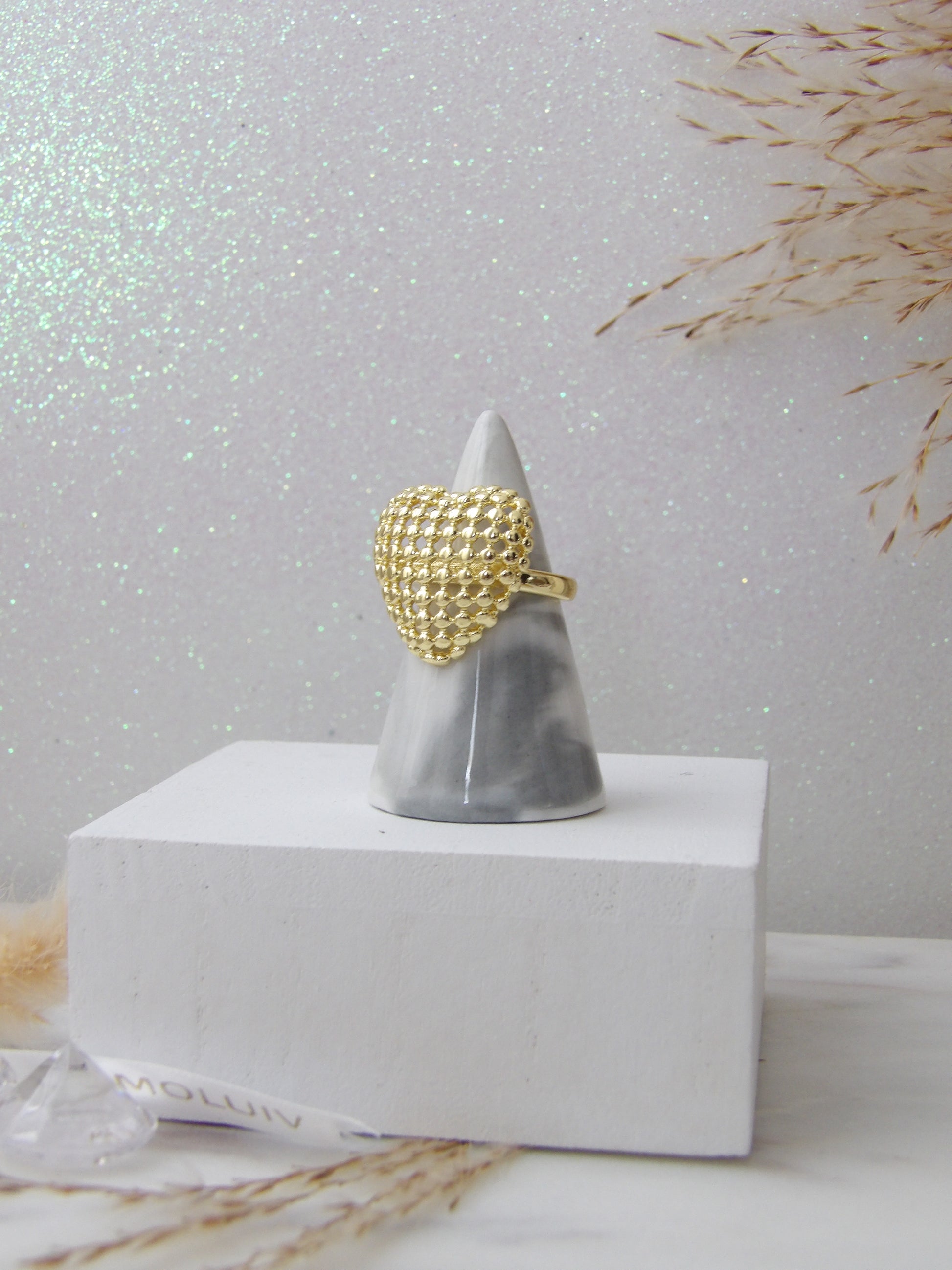Glowin is a maxi adjustable ring crafted in rhodium, featuring a textured heart design that captures the light and turns heads effortlessly. A statement of confidence, elegance, and glow—all in one piece.