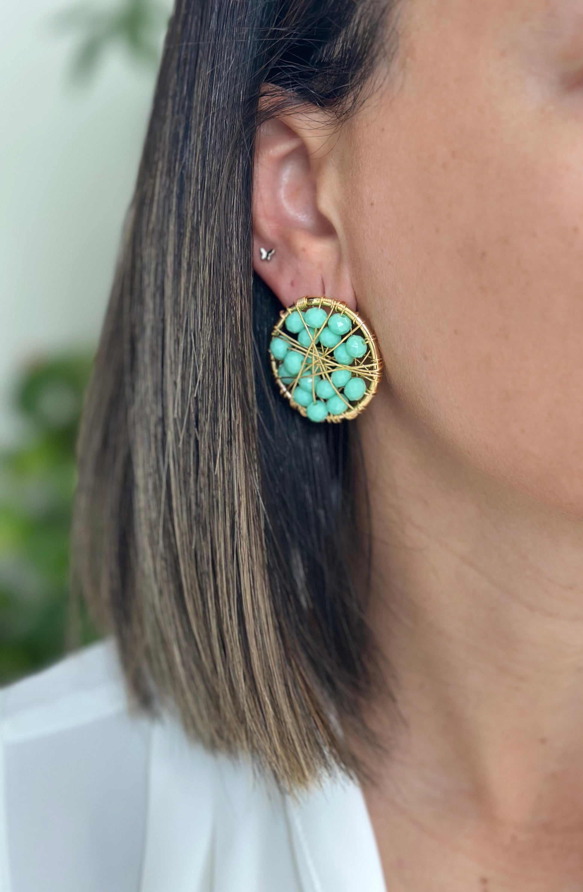 With their artistic gold wire weaving over green beads, they have a handmade, yet very elegant, boho-chic vibe. They convey energy, a connection with nature, and creativity—perfect for a woman who loves anything different, handmade, and full of soul.
