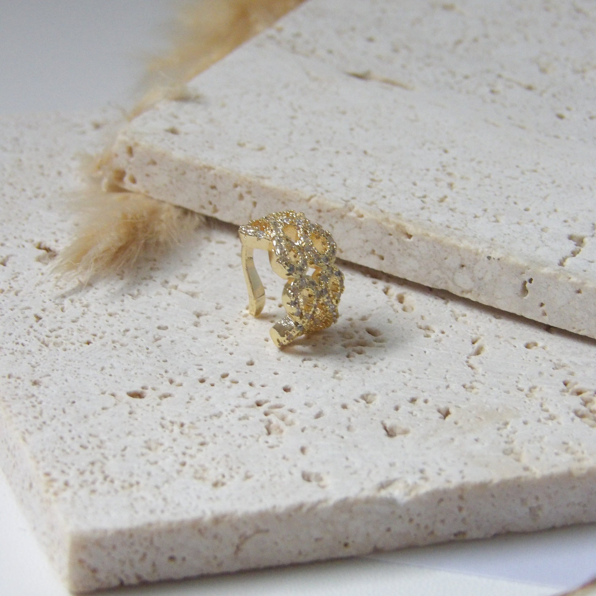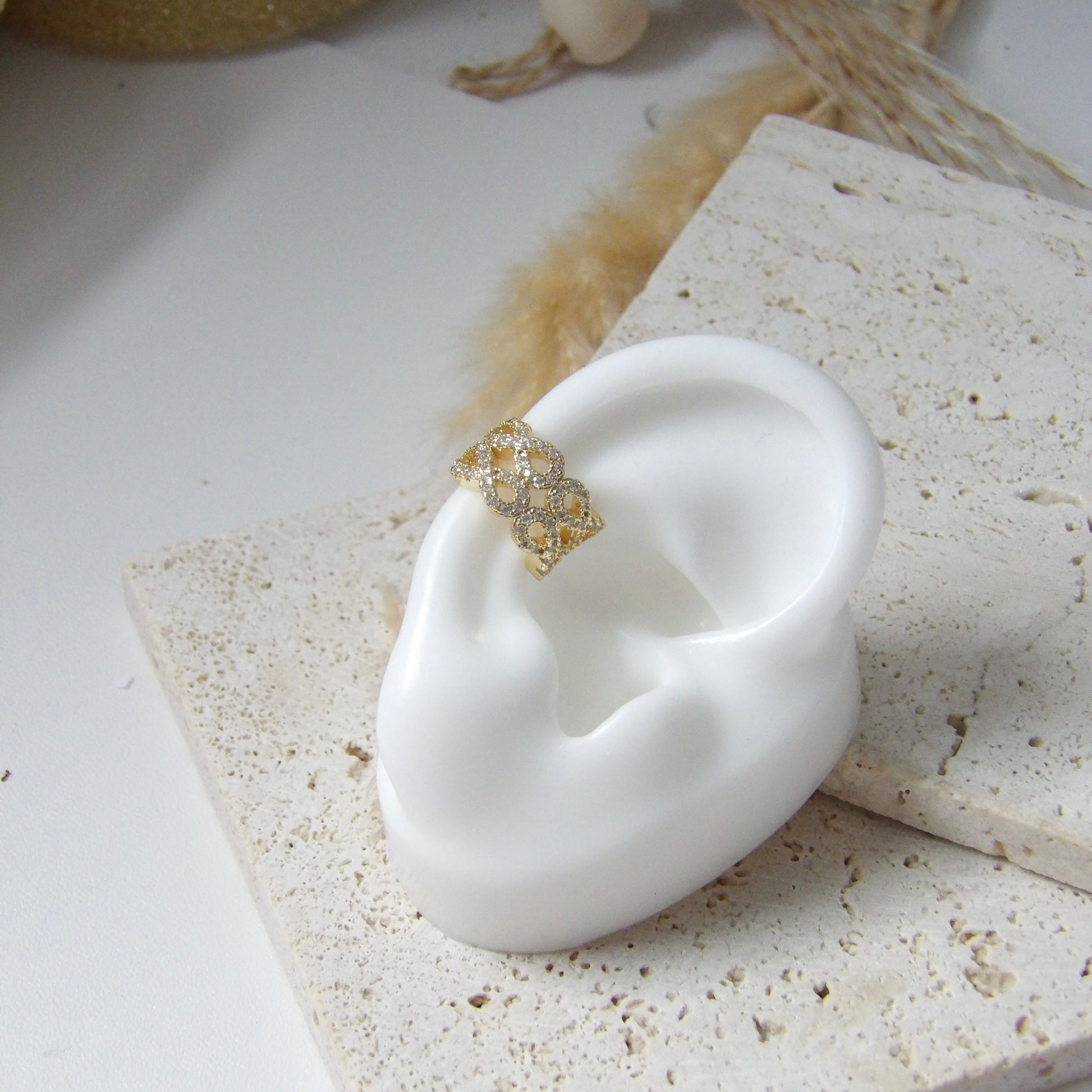 Indulge in the timeless elegance of our INFINITE EAR CUFF GOLD. Crafted with exquisite ROHODIUM and adorned with sparkling ZIRCONS, this ear cuff adds a touch of luxury to any outfit. Elevate your style with this sophisticated and exclusive piece.