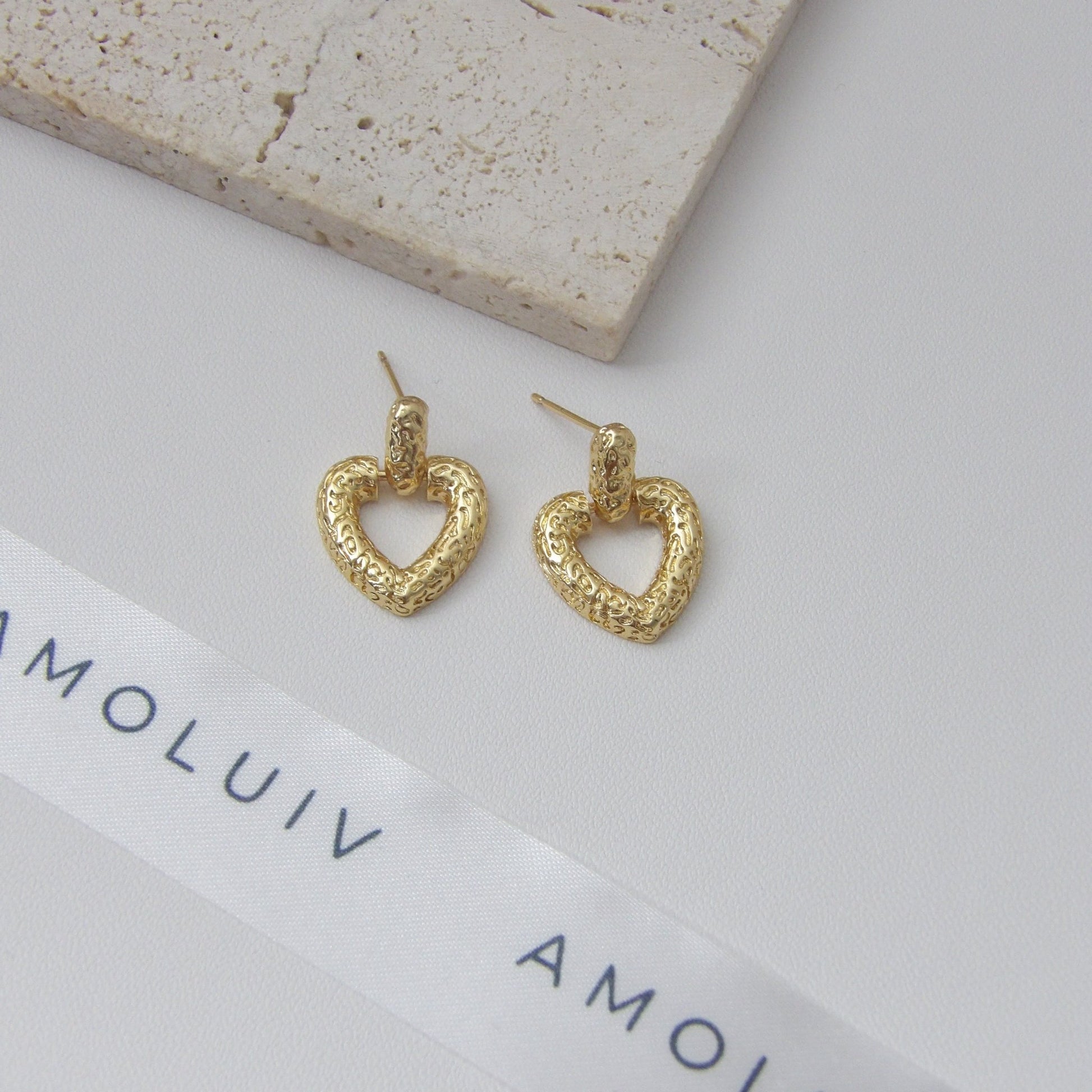 Take a risk and stand out with JOSSY EARRINGS GOLD! Featuring a beautiful textured heart design, these earrings are perfect for everyday wear while adding a touch of style. Made with rhodium, they're both durable and stunning. Upgrade your accessory game today!