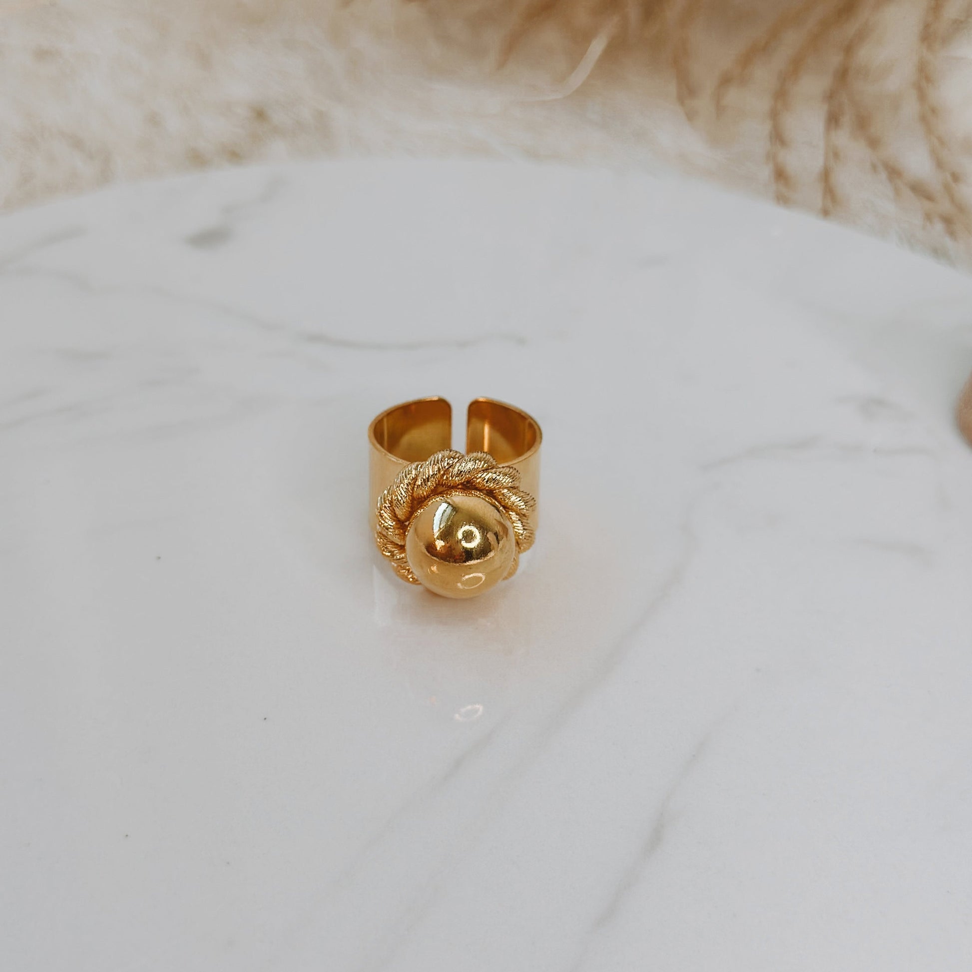 Indulge in luxury with our NUDO GOLD RING. Crafted from bronze and plated with 24K gold, this adjustable ring is the epitome of sophistication. Elevate your style and add a touch of elegance to any outfit with this exclusive piece.