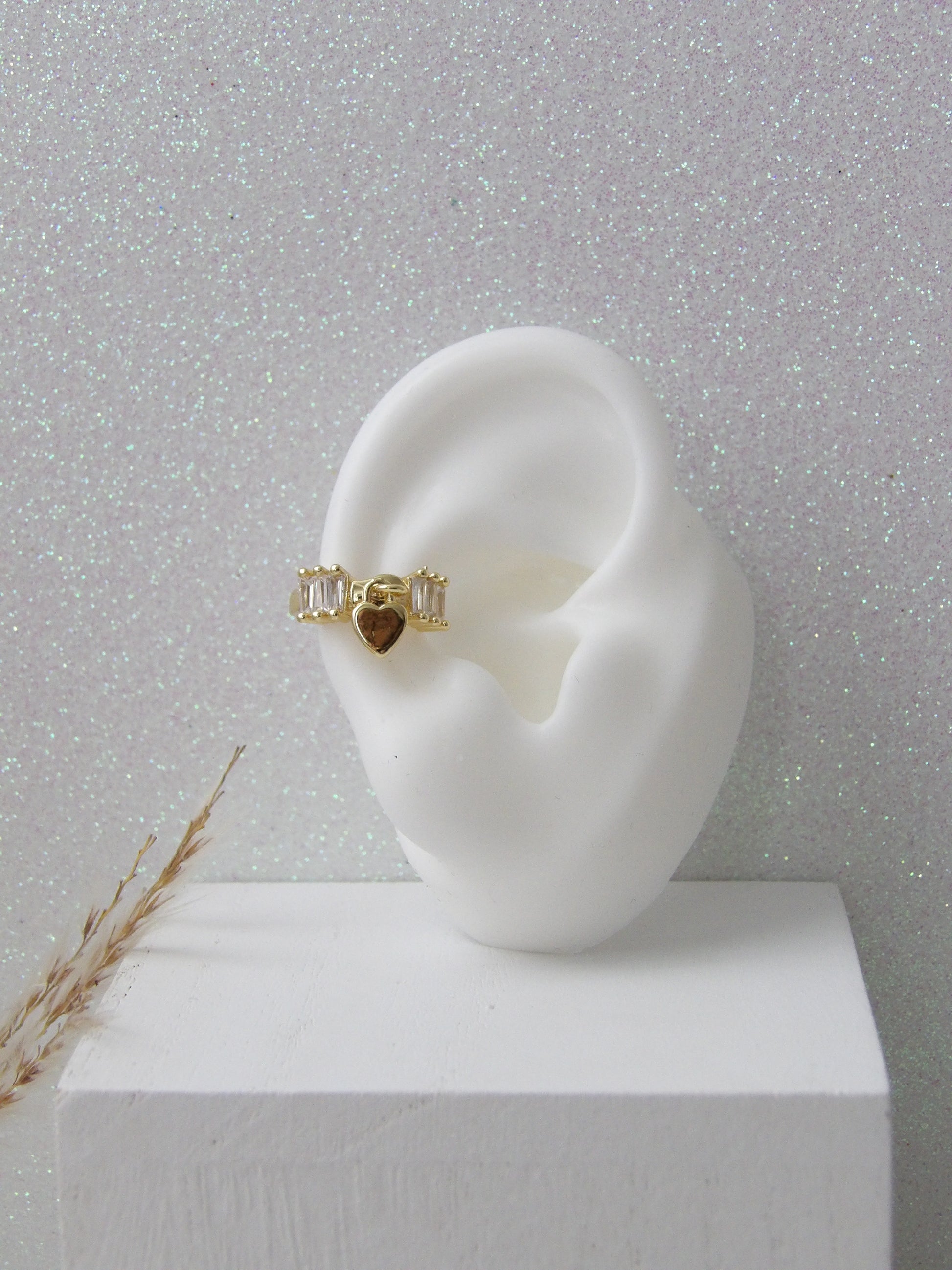 ✨ LIORA | Rhodium Ear Cuff with Zirconias and Heart Detail A whisper of light and love that envelops your style. Liora is an ear cuff designed to shine: set with impeccably sparkling zirconias and finished with a delicate golden heart that adds a touch of tenderness and sophistication. A piece that inspires, moves, and elevates any look with its romantic and subtle essence. ✨ Designed to inspire. Made to stand out.