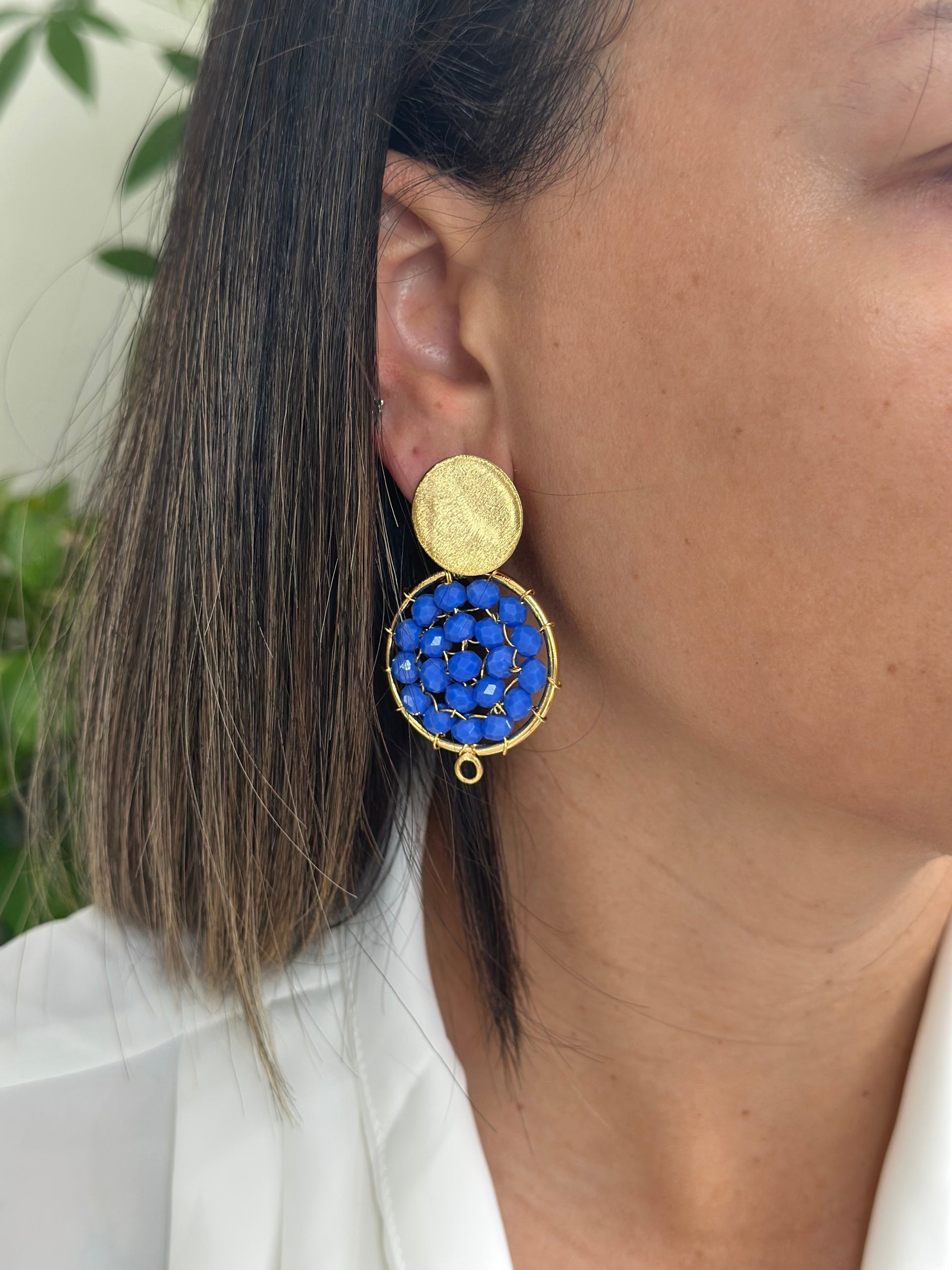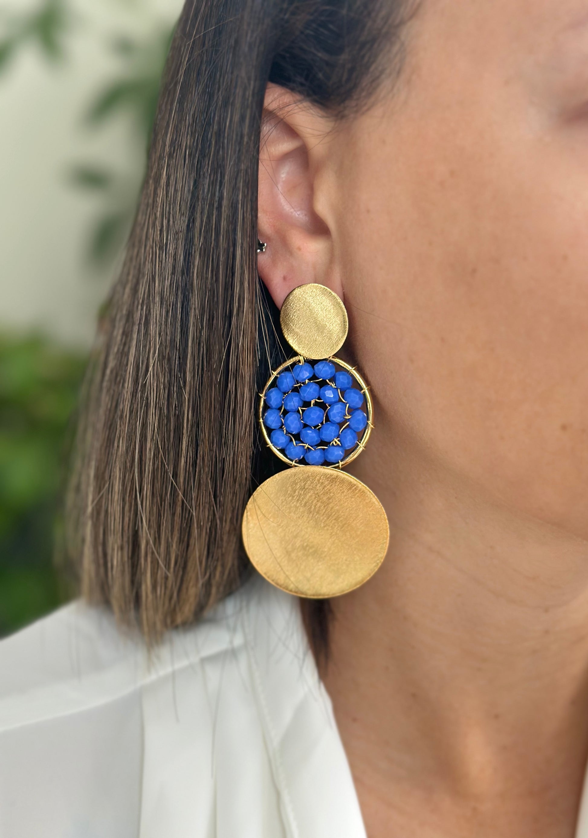 This multipurpose design, handmade in gold-plated bronze, with golden circles and a center woven with deep blue beads, has an artistic, versatile, and visually striking vibe. It reflects creativity, freedom of style, and that exclusive Amoluiv seal.