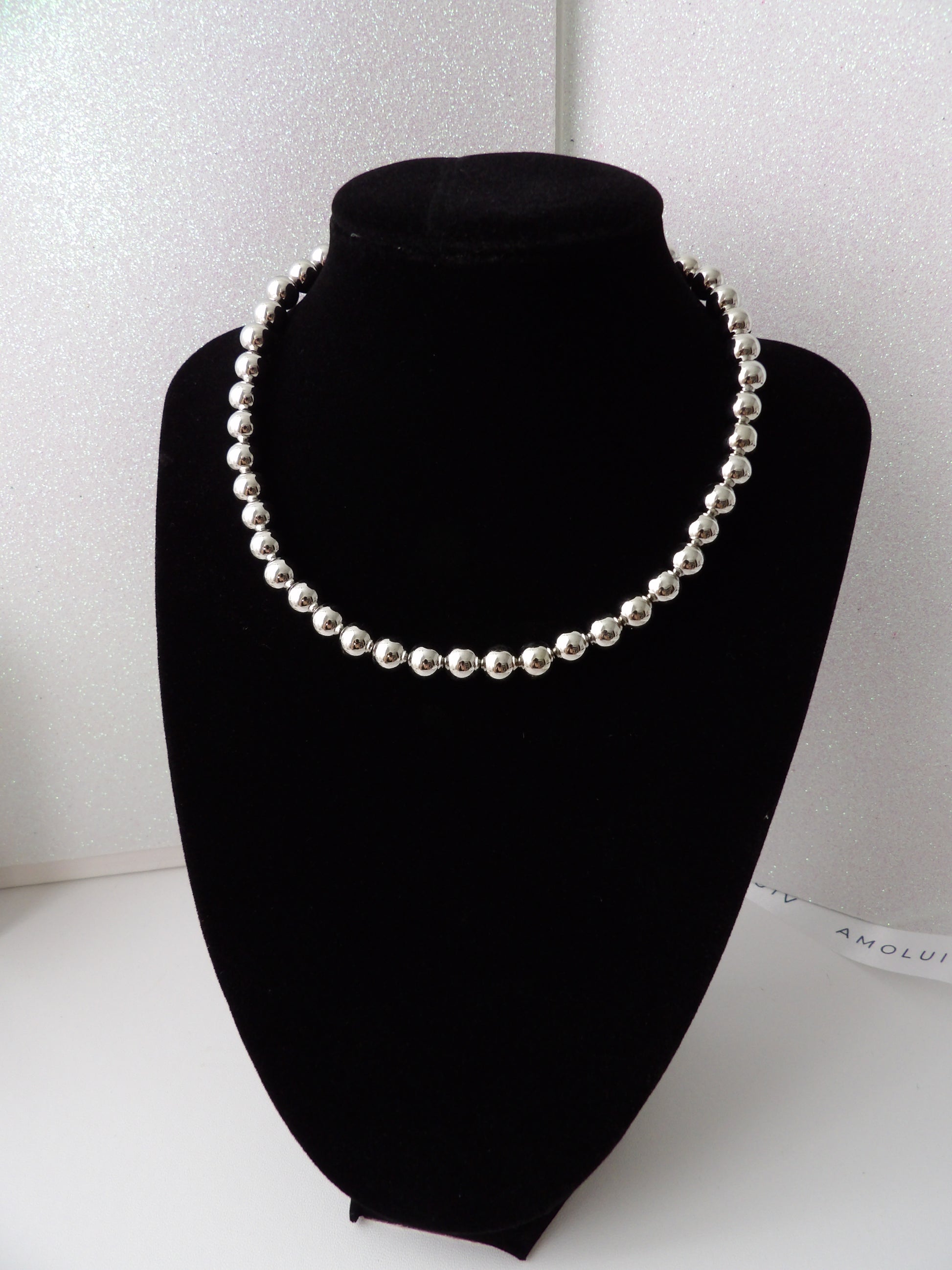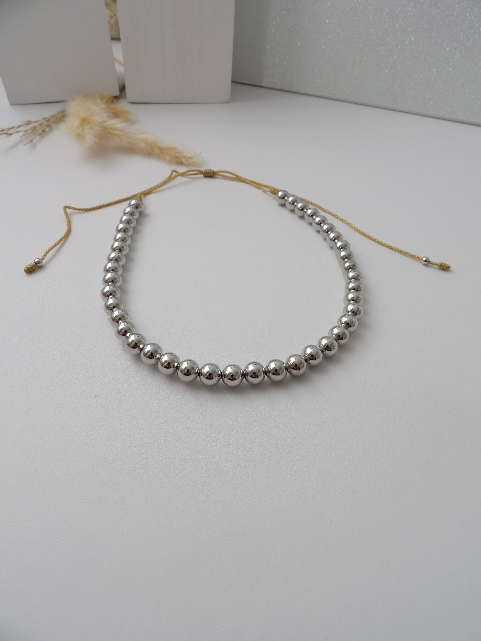 Minimalist, modern, and handcrafted with the distinctive stamp of AMOLUIV. LUNÉ SILVER is an adjustable choker made with medium rhodium-plated beads that subtly and characteristically adapts to your neck. Perfect for elevating anything from a casual look to a more sophisticated outfit, this piece is a chic essential that you can wear alone or layered. ✨ Polished elegance, effortless style.