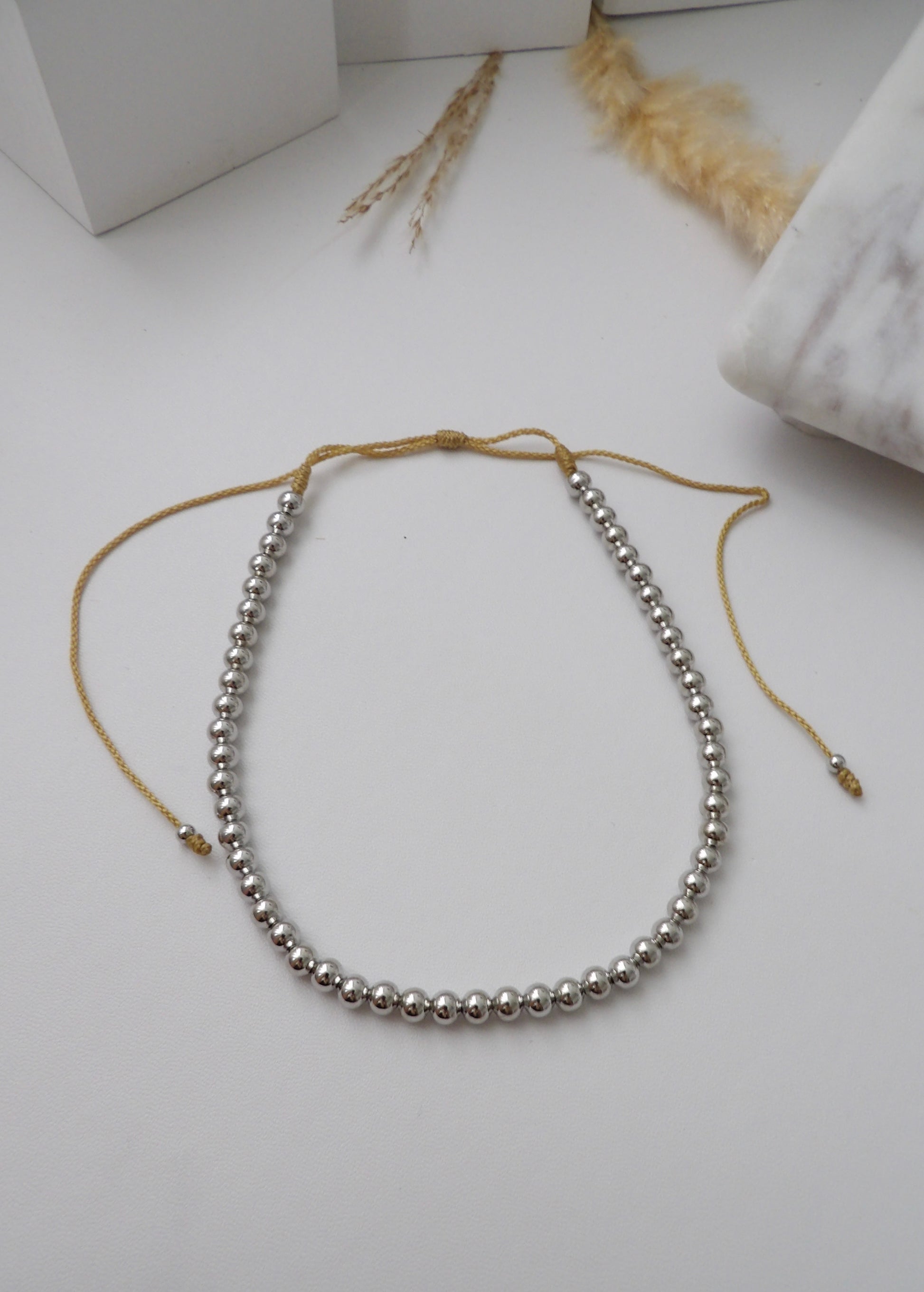 Minimalist, modern, and handcrafted with the distinctive stamp of AMOLUIV. LUNÉ SILVER is an adjustable choker made with small rhodium-plated beads that subtly and characteristically adapts to your neck. Perfect for elevating anything from a casual look to a more sophisticated outfit, this piece is a chic essential that you can wear alone or layered. ✨ Polished elegance, effortless style.