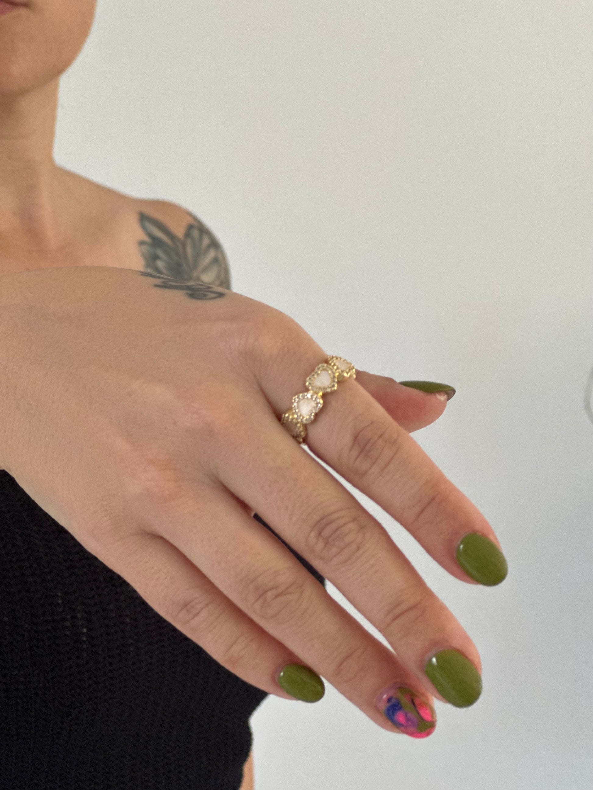 LUNÉA LOVE | Adjustable Ring in Rhodium with Heart DetailsA poem in the form of jewelry. Lunéa Love is an adjustable ring with delicate hearts framed in sparkling gems, designed to highlight the tenderness, elegance, and light that you carry within. Perfect for wearing alone or combining with other favorites. Because self-love is also dressed in style.✨ Designed to inspire you. Made to stand out.
