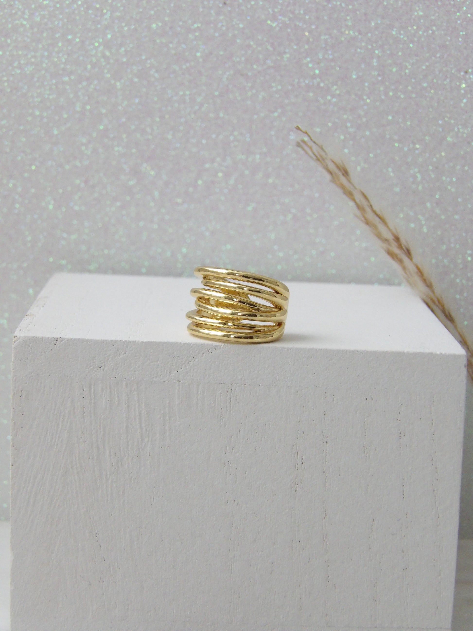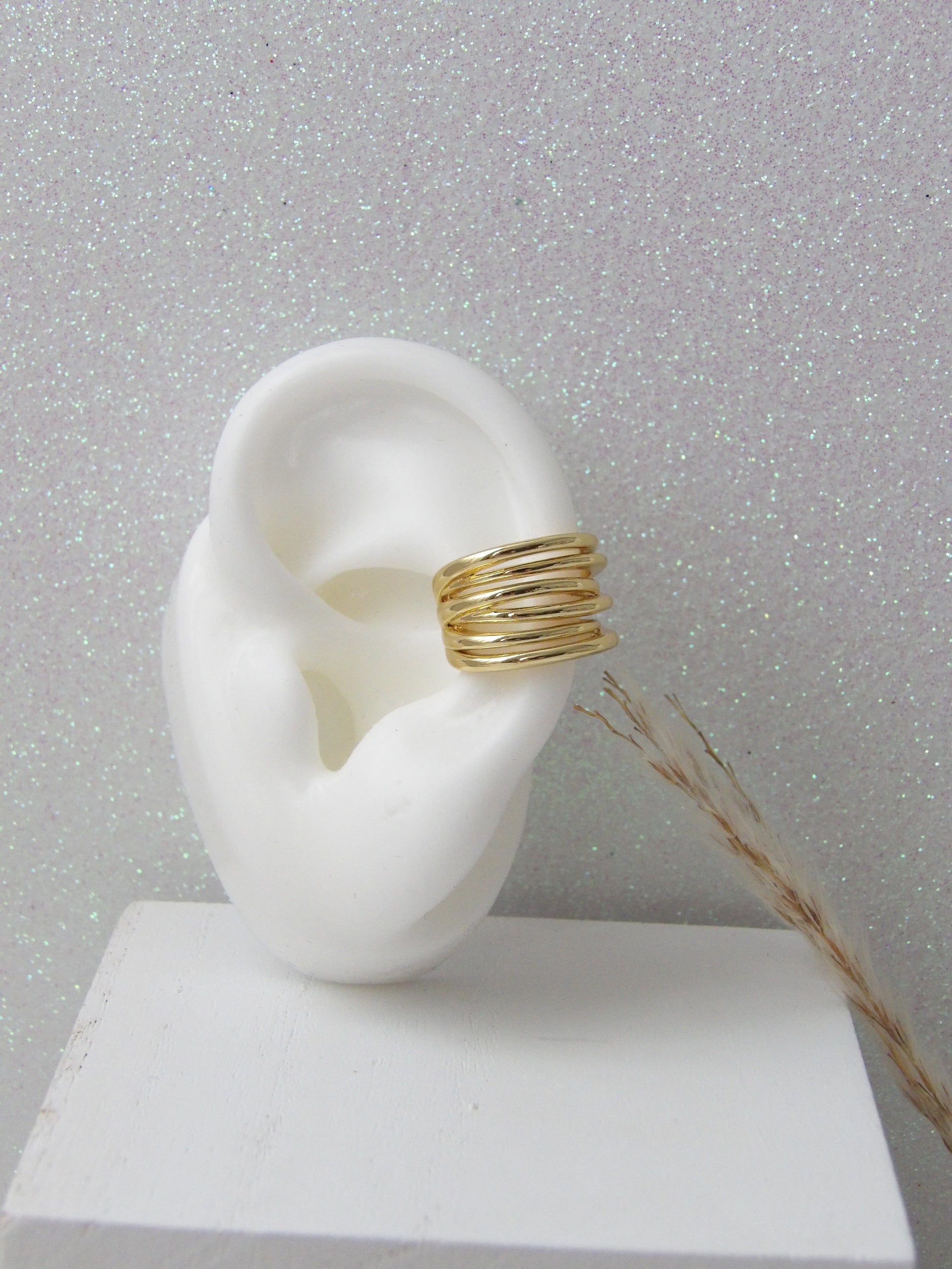 A timeless design that elevates your style with a touch of golden sophistication. This ear cuff, made of high-quality rhodium, wraps around your ear with delicate intertwined hoops, creating a play of light that highlights your natural beauty. Ideal for wearing alone or pairing with other pieces from our collection, it is the jewel that transforms your look and takes it to another level.✨Designed to inspire. Made to stand out.