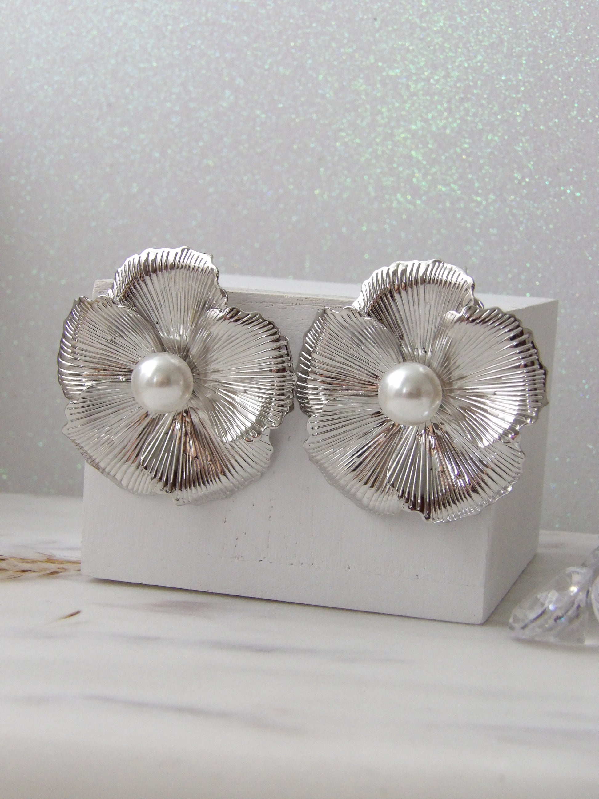 The Luzia Maxi Earrings are the ultimate statement: sculptural flowers in silver rhodium with a pearl in the center that radiates sophistication. Their oversized design is made to catch all the attention and elevate any outfit with a modern and elegant touch. ➤ Dare to shine big.
