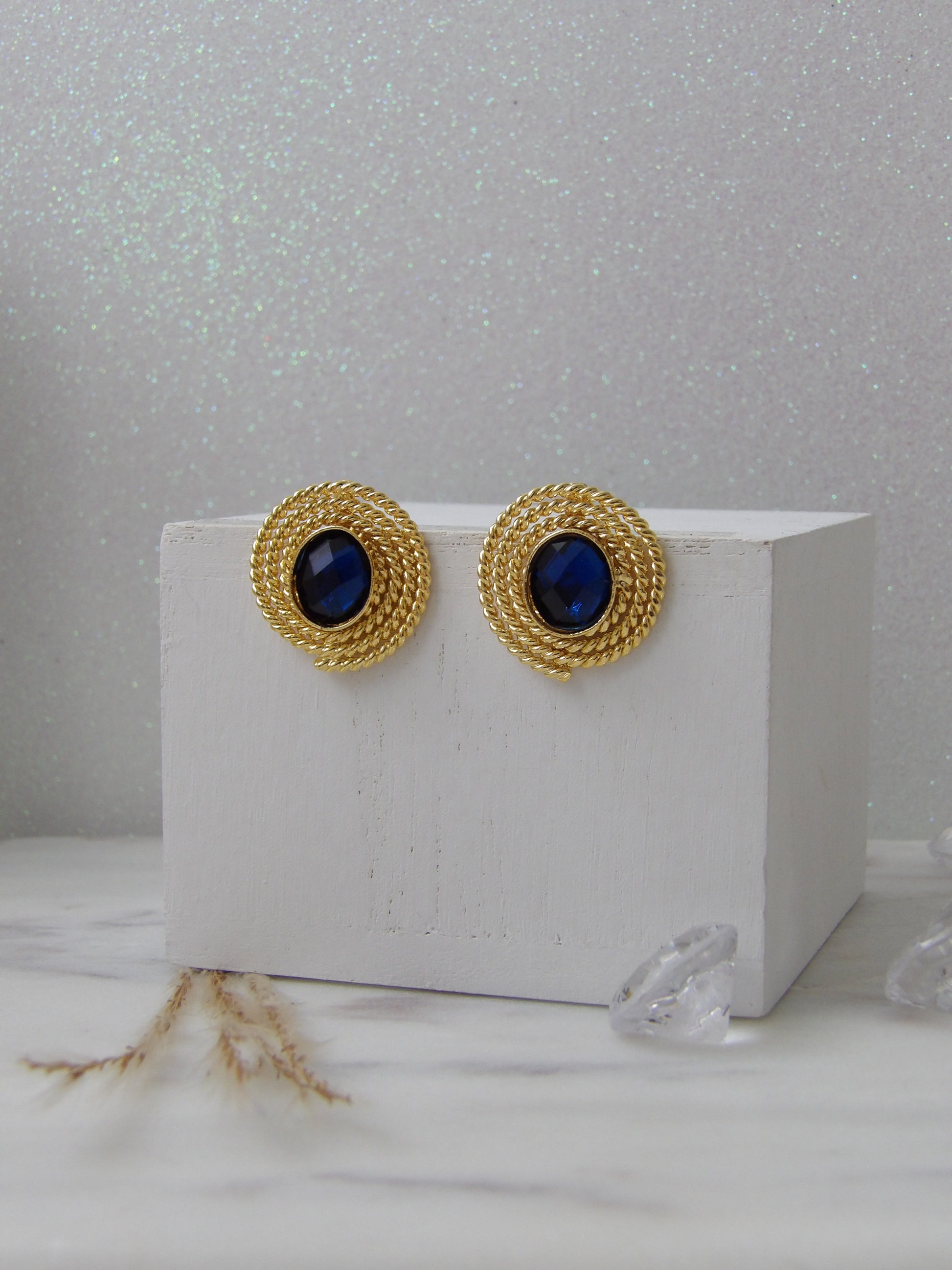 A reinvented classic to shine both day and night. The Midnight Halo Studs combine a braided design in gold-plated bronze with a mesmerizing deep blue crystal. Elegant, timeless, and easy to pair, they are the perfect accessory to elevate any look with a touch of mystery and sophistication.