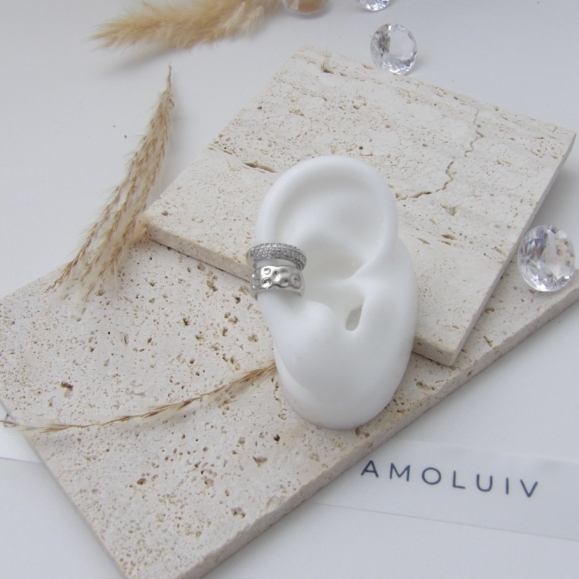 Adorn your ear with the elegant and exclusive Mirabelle Ear Cuff Silver. Crafted with rhodium and adorned with beautiful small zircons, this cuff is the perfect combination of sophistication and luxury. The two rings, featuring an intricate and tasteful texture, make this ear cuff a must-have in any collection.