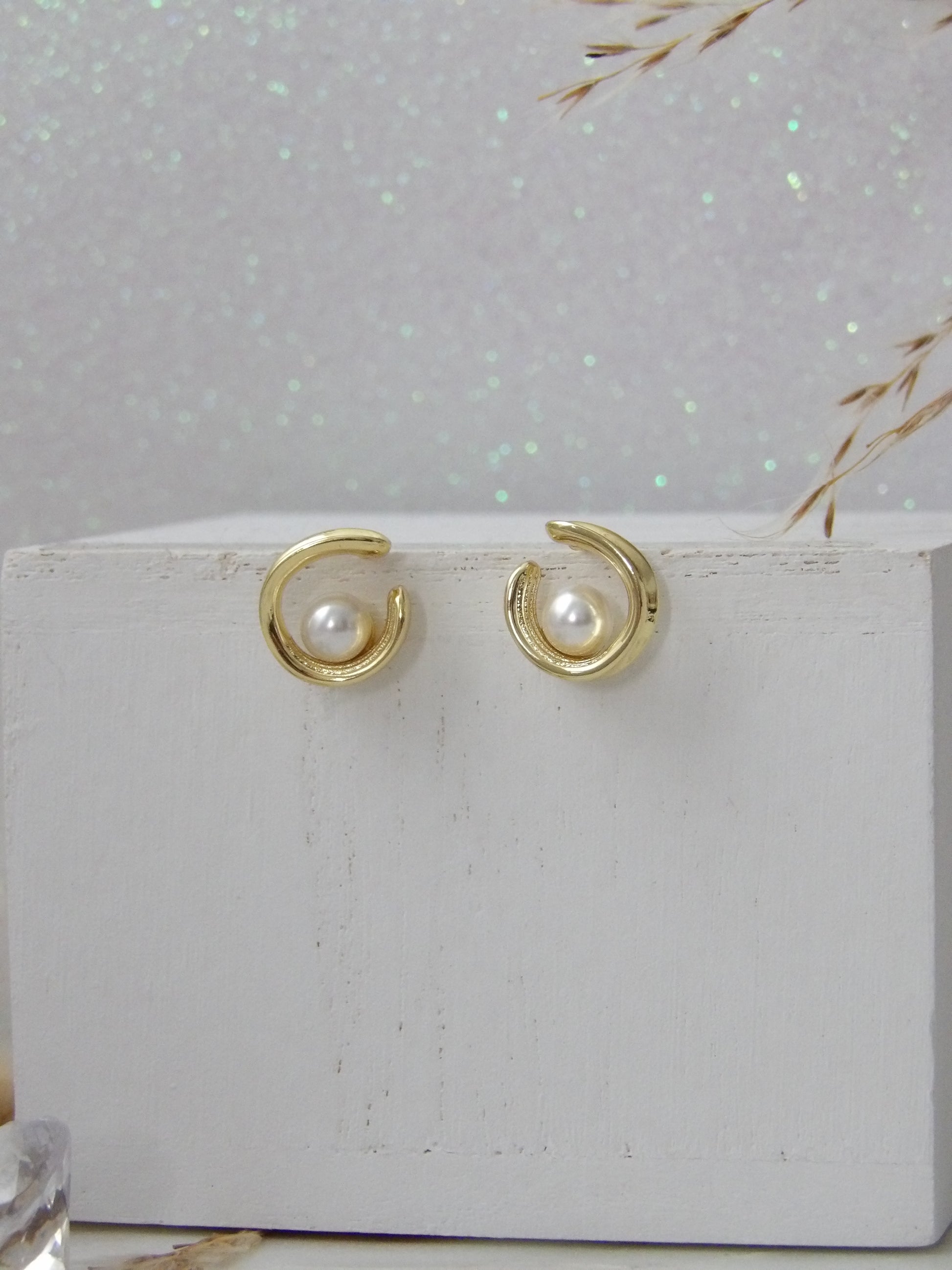 Delicate and timeless, our Nayra earrings feature a lustrous pearl embraced by a modern circular design in rhodium-plated finish. A perfect touch of elegance for every day or a special night out.