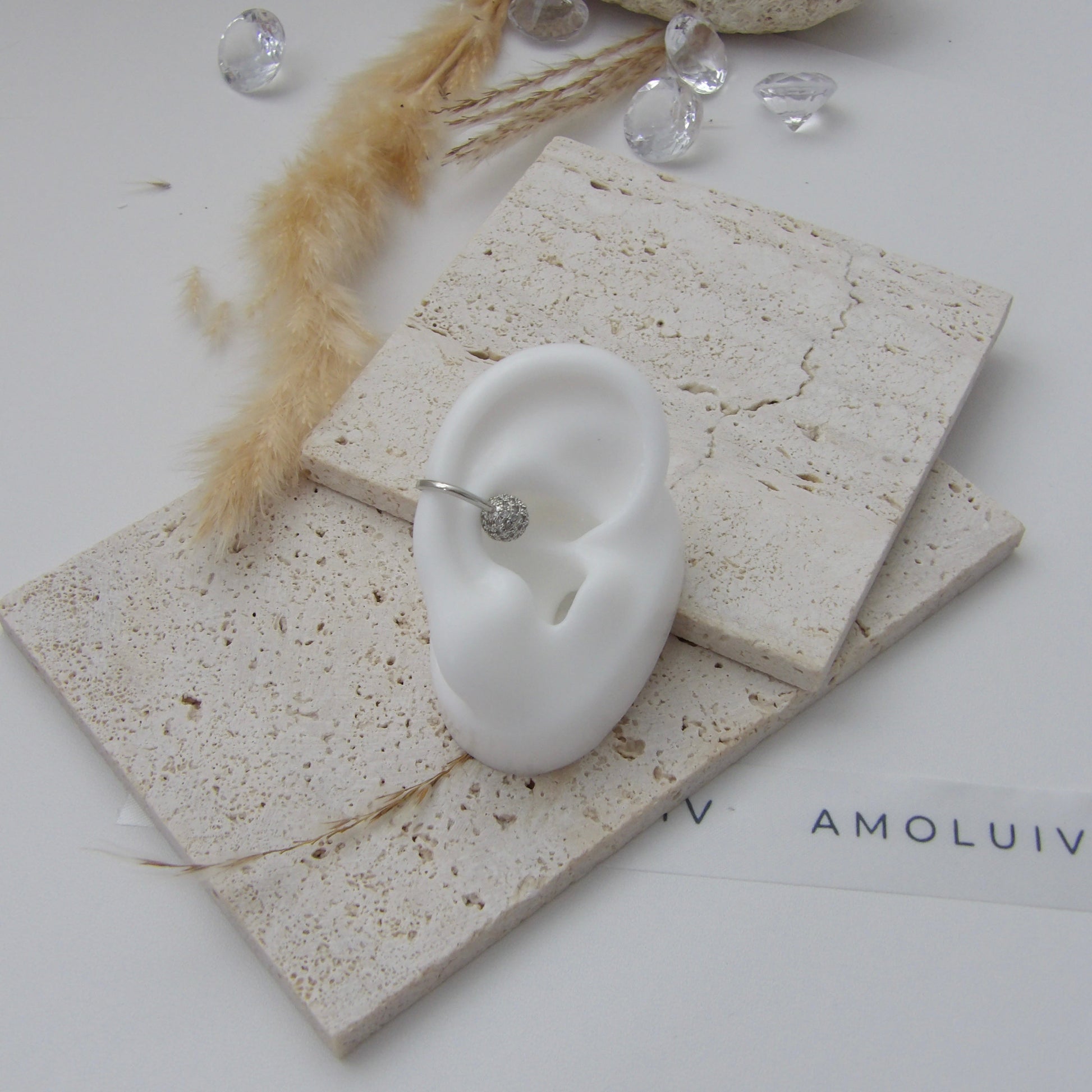 Elevate your style with the OURA EAR CUFF SILVER. Featuring sleek rhodium, a delicate ball with sparkling zircons, and unmatched elegance, this cuff adds a touch of glamour to any outfit. Stand out and make a statement with this must-have accessory.