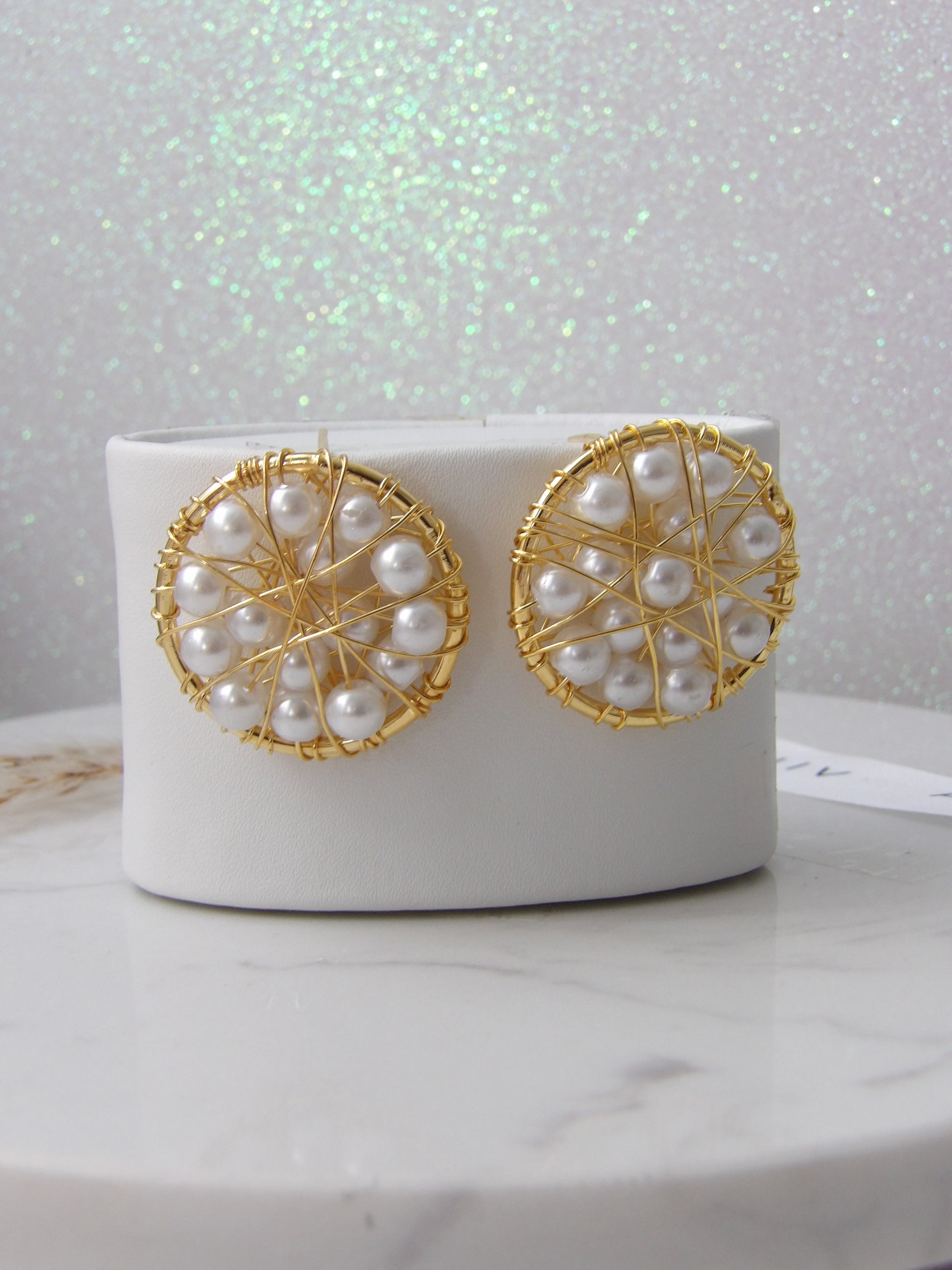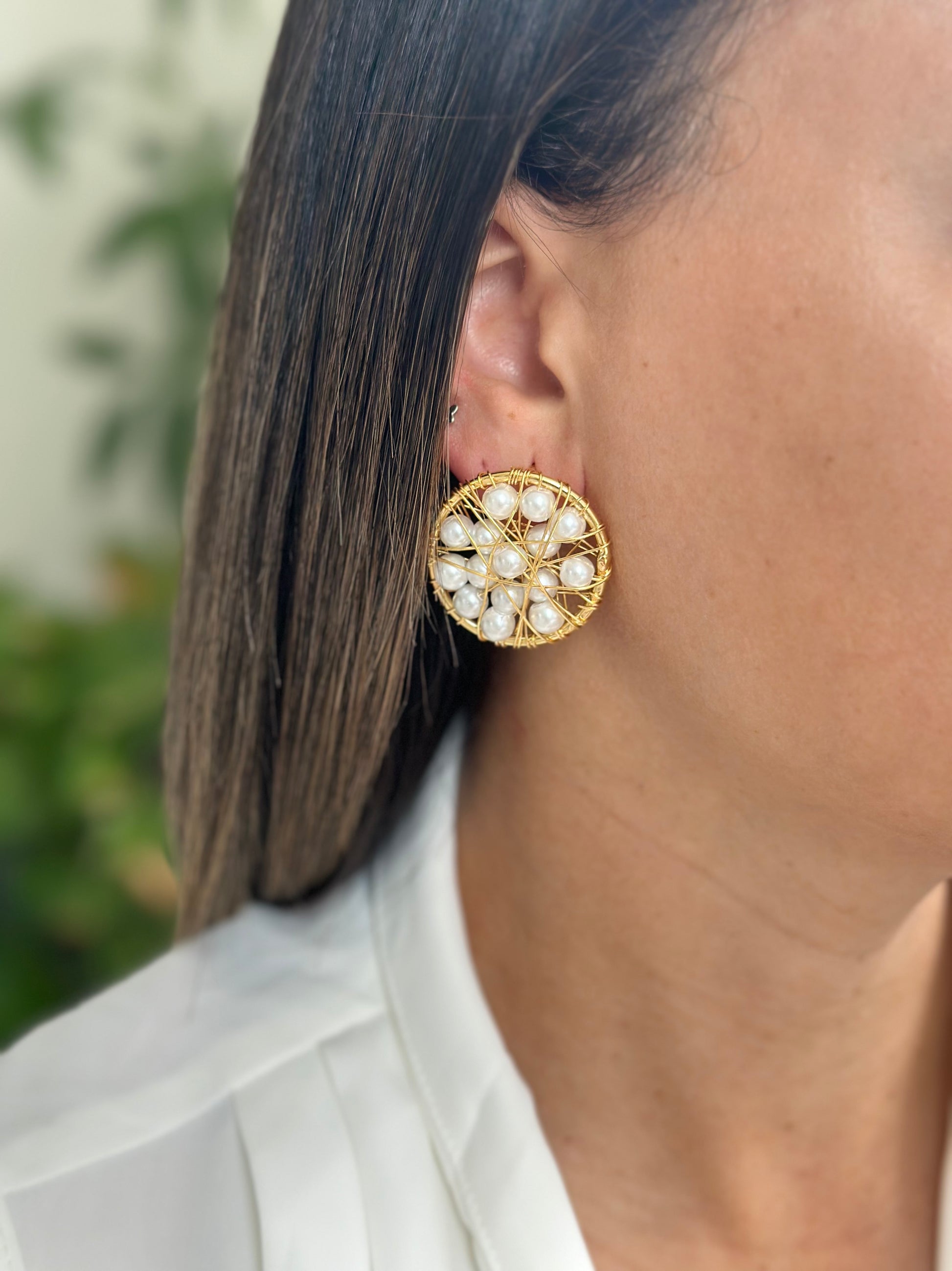 Let yourself be captivated by the magic of our Pearl Dreamcatcher earrings, a work of art handcrafted in 24k gold-plated bronze, adorned with natural pearls. Its sophisticated, enveloping design enhances your style with a touch of bohemian elegance and timeless sparkle. Perfect to accompany you on every special occasion.