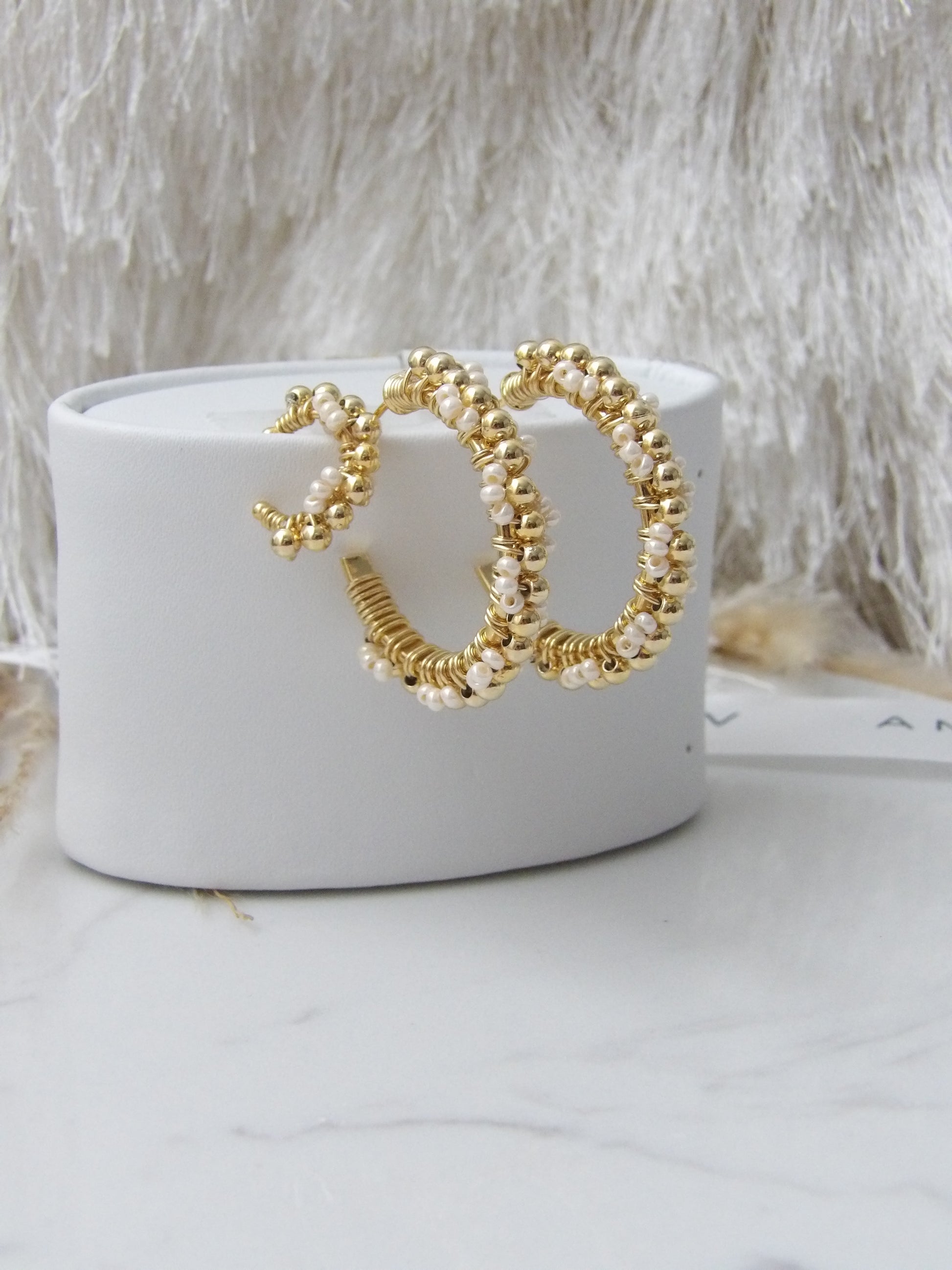 Add a touch of handcrafted glamour with the PEARL WHISPER Earrings Set. Made with rhodium, gold, and white basins, these earrings will take your style to the next level. Complete the look with the matching ear cuff. Shine bright with this unique and stylish set.