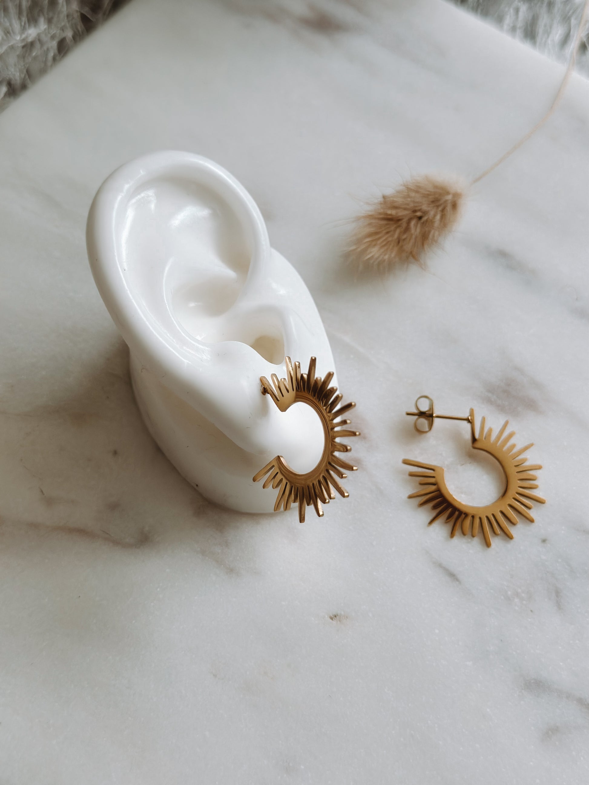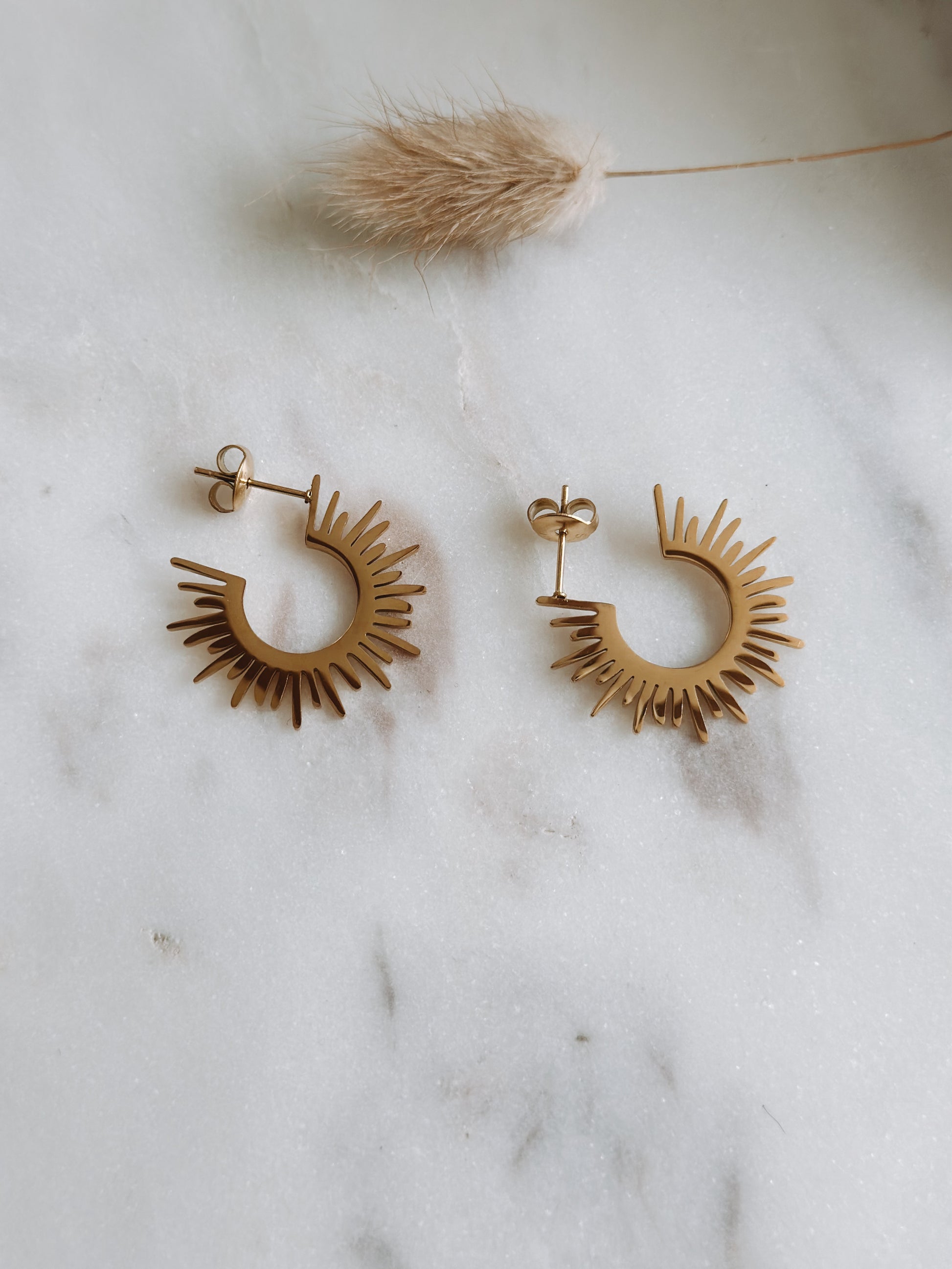 Crafted from exquisite stainless steel, these Rayitos Hoops EARRINGS radiate a sense of refined elegance.
