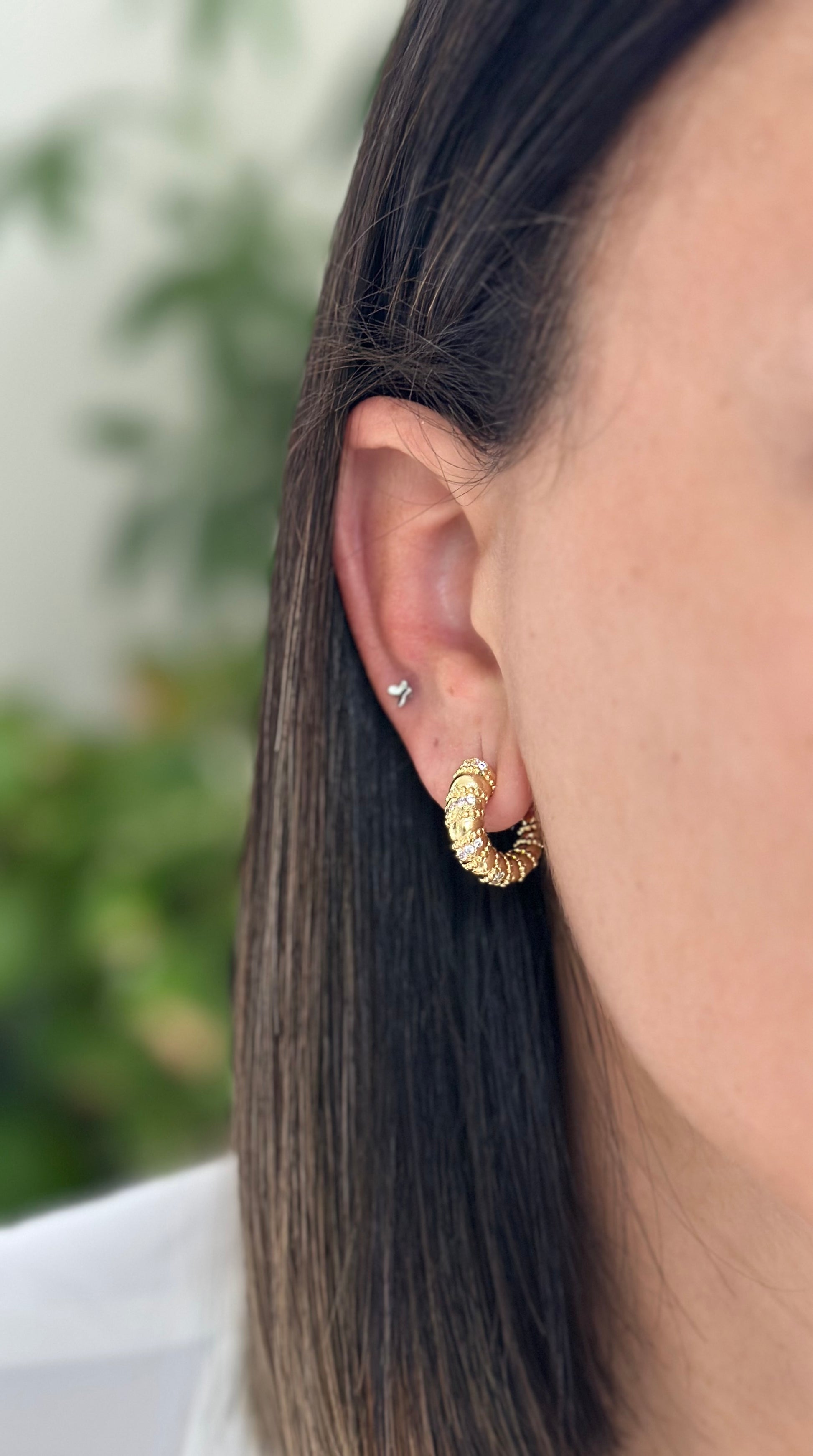 The hoop design with a grooved texture and shiny lines makes them look impressive, sophisticated, and modern, perfect for elevating any look with character and light.