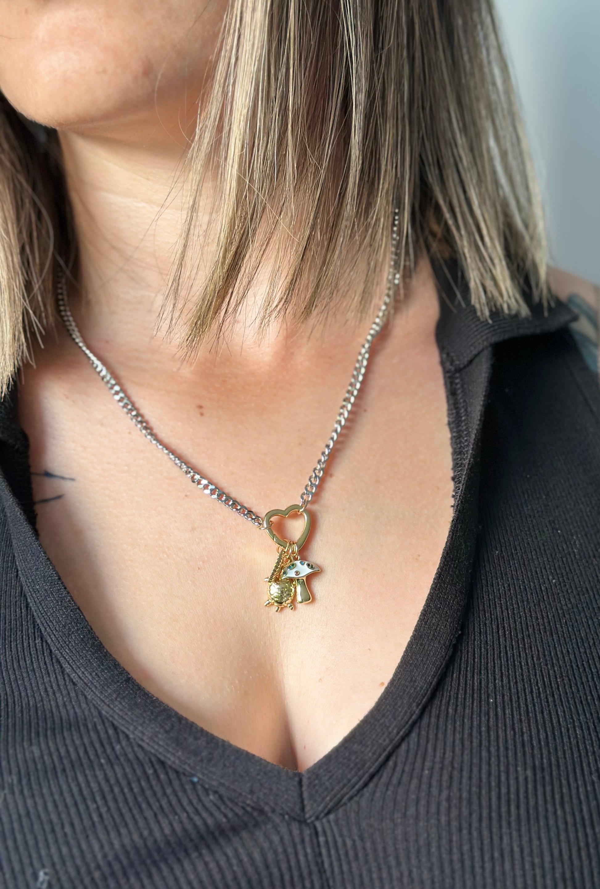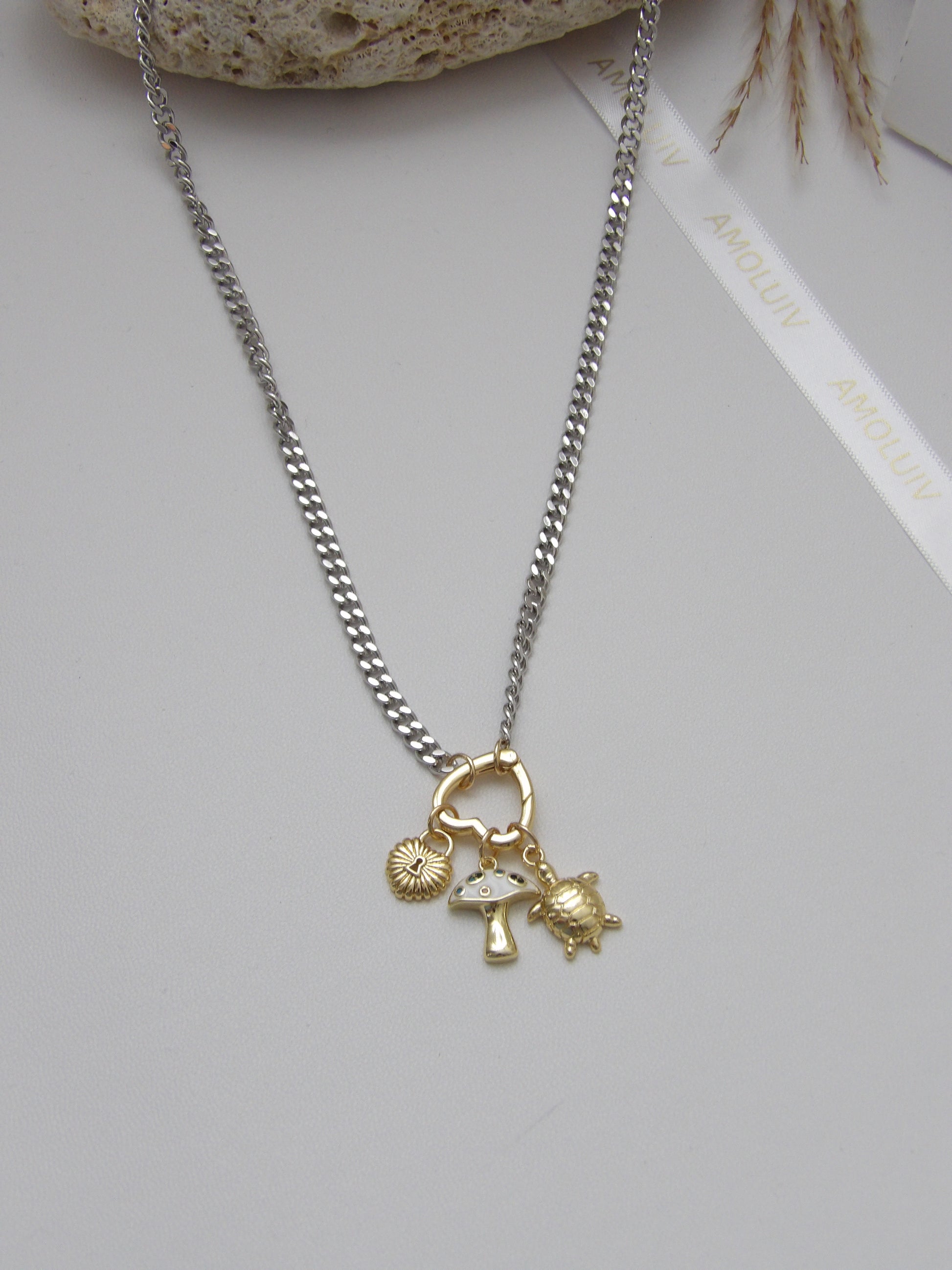 Embrace your adventurous side with our SECRET GARDEN NECKLACE GOLD! Made with a rhodium chain and adorned with a turtle, mushroom, and golden flower charms, this piece adds a bohemian, natural, and charming touch to any outfit. Perfect for women who appreciate intricate details, a connection with nature, and bold personal style. 🌿✨