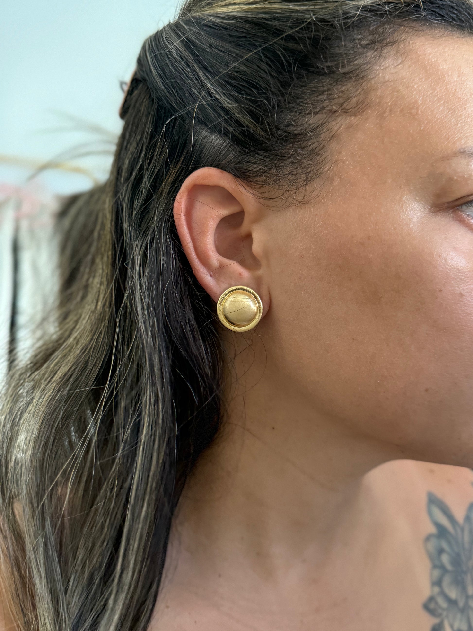 SÉLENE | Gold-plated rhodium earrings with a satin finish Minimalism that leaves a mark. SÉLENE is that pair of earrings that combines the classic with the modern. Its round shape and satin texture provide an elegant shine that transforms any outfit into a style statement. Perfect for wearing with confidence, every day. 🌙 A piece of jewelry that speaks without words.