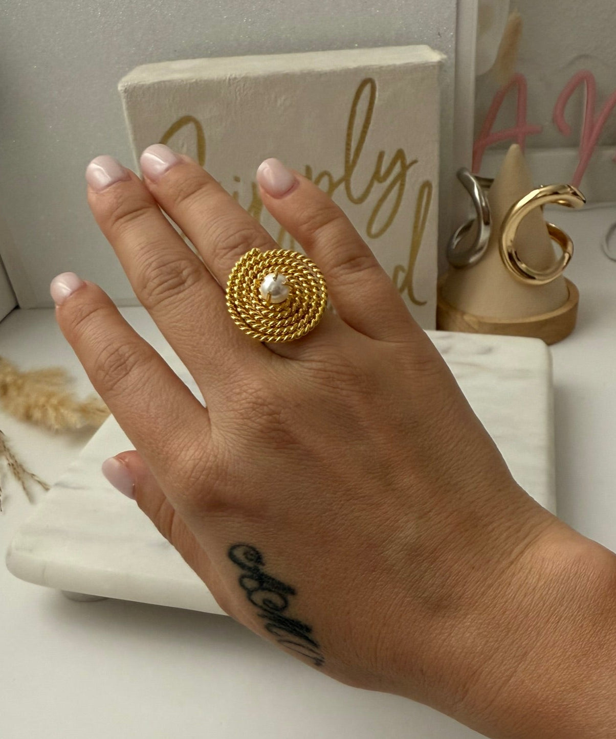 The Mother-of-Pearl Sun Ring captures the essence of eternal summer with its circular design in 24k gold-plated bronze, handcrafted, and crowned with a mother-of-pearl that reflects light and elegance. A light, versatile, and radiant piece, designed to illuminate every movement. Dare to have it. Wear it, shine, and make it yours.