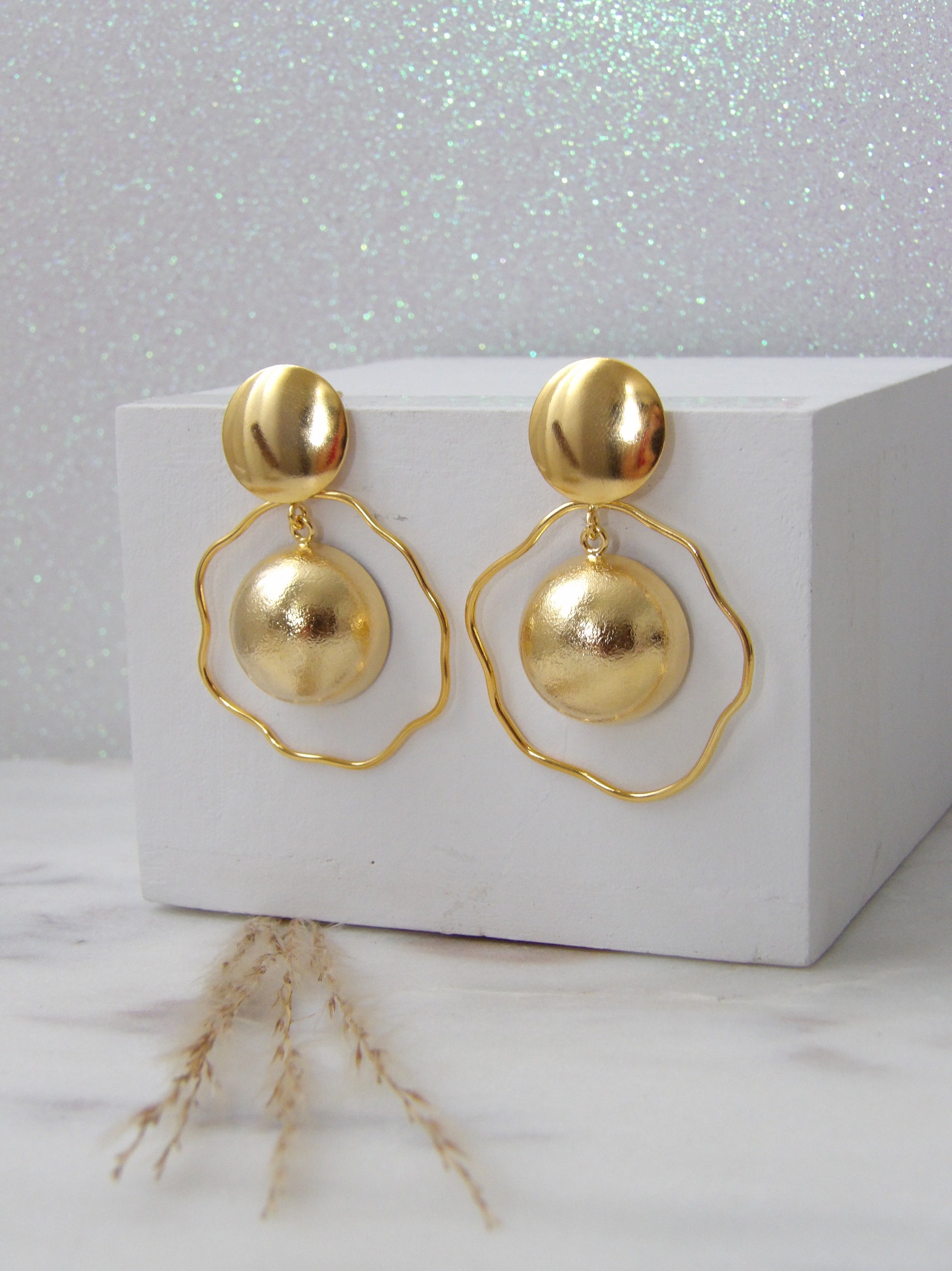 SOLENNE | Handmade earrings in 24K gold-plated bronze A sculptural jewel that celebrates light and form. SOLENNE merges organic curves with matte and polished finishes to create a modern, bold, and absolutely elegant silhouette. Designed and handcrafted for women who effortlessly shine.✨ Lightweight, with movement, and ready to steal glances.