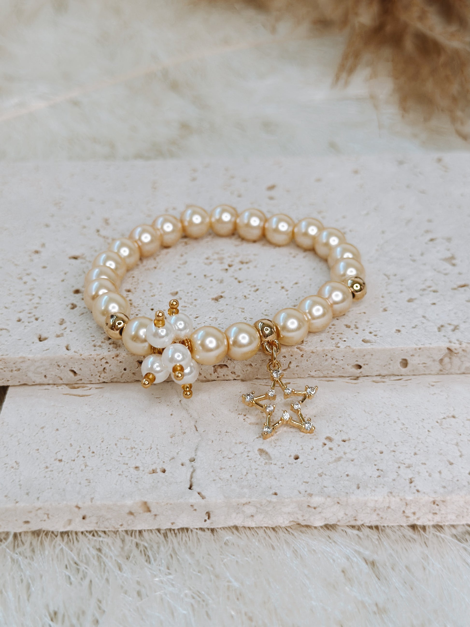 Indulge in luxury with STAR PEARLS GOLD. This handcrafted piece boasts a glistening goldfield and an expandex stretch for comfort. Each pearl is meticulously handmade, adding a touch of exclusivity to your look. Elevate your style with these timeless and elegant pearls.