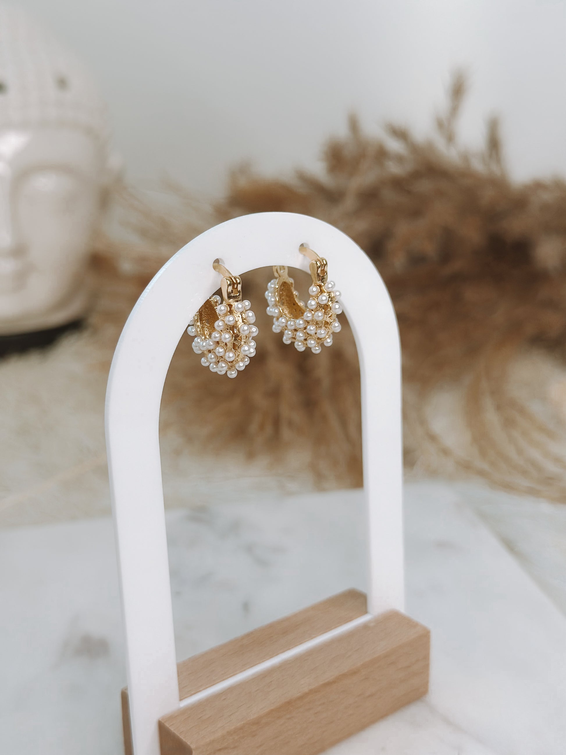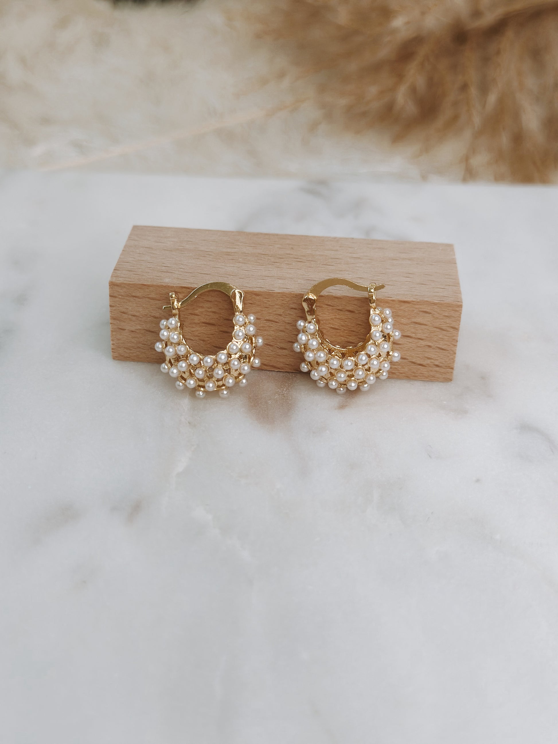 Indulge in luxury with our Valentina Pearl Gold Earrings. Crafted with exquisite rhodium and adorned with beautiful details, these earrings are the perfect addition to elevate any outfit. Embrace elegance and sophistication with every wear.