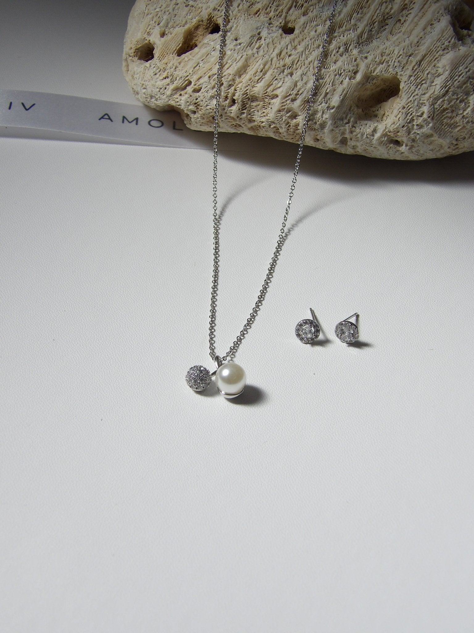 Experience the thrill of the unknown with the VALLEY NECKLACE SET SILVER. Made with stunning rhodium, pearls, and zircons, this set includes earrings for a complete look. Make a bold statement and embrace your daring side with this elegant and adventurous jewelry set.