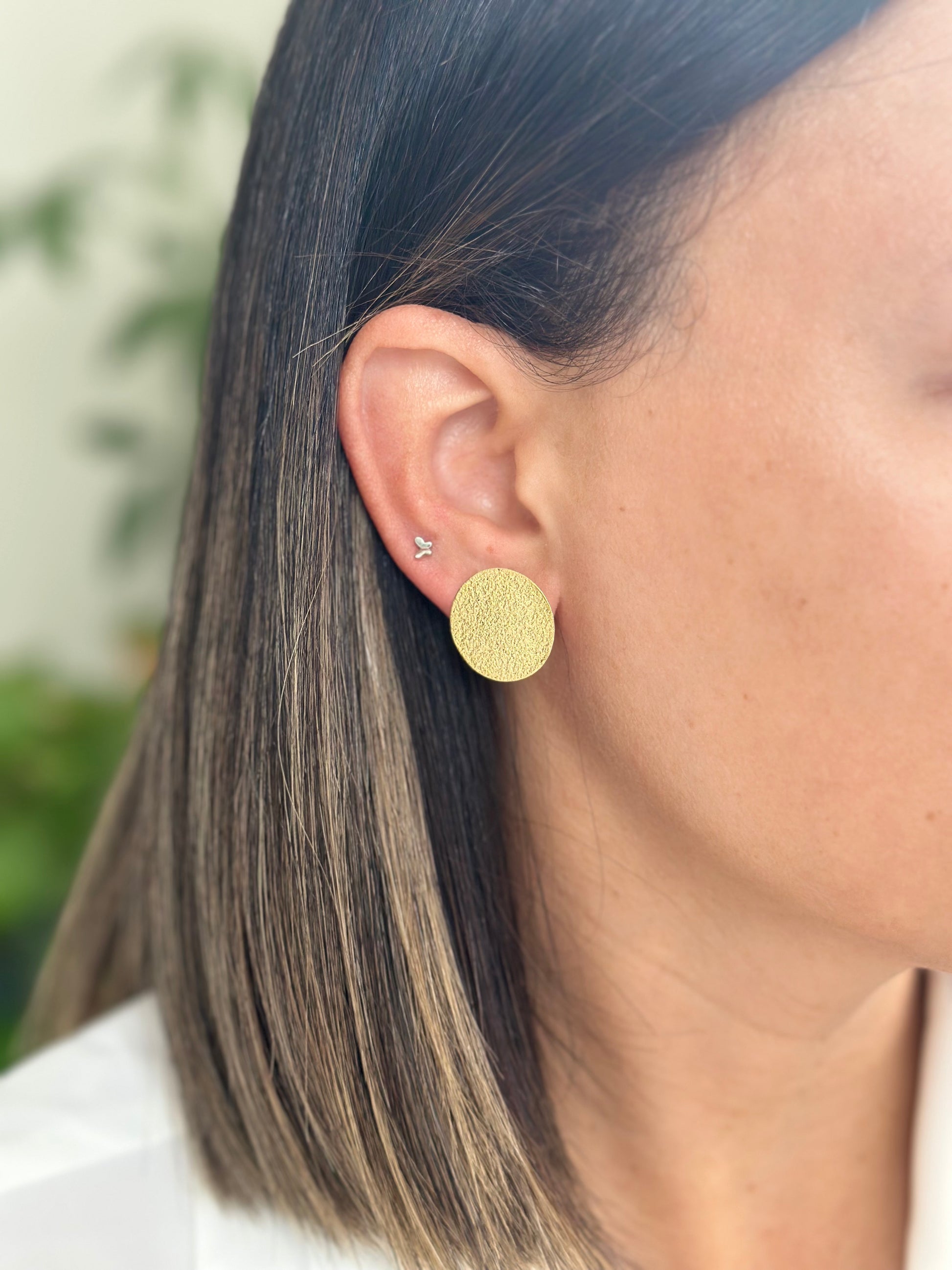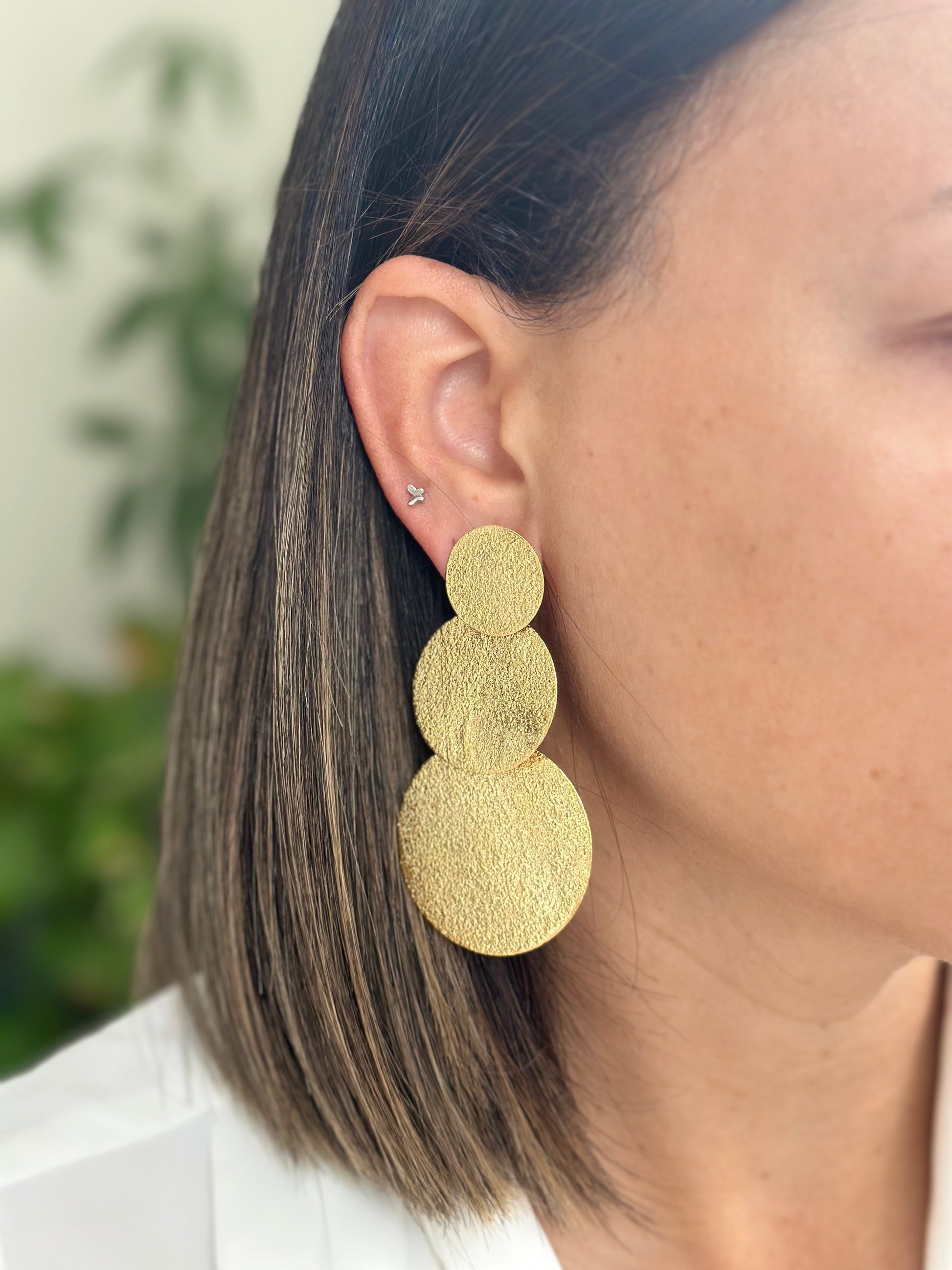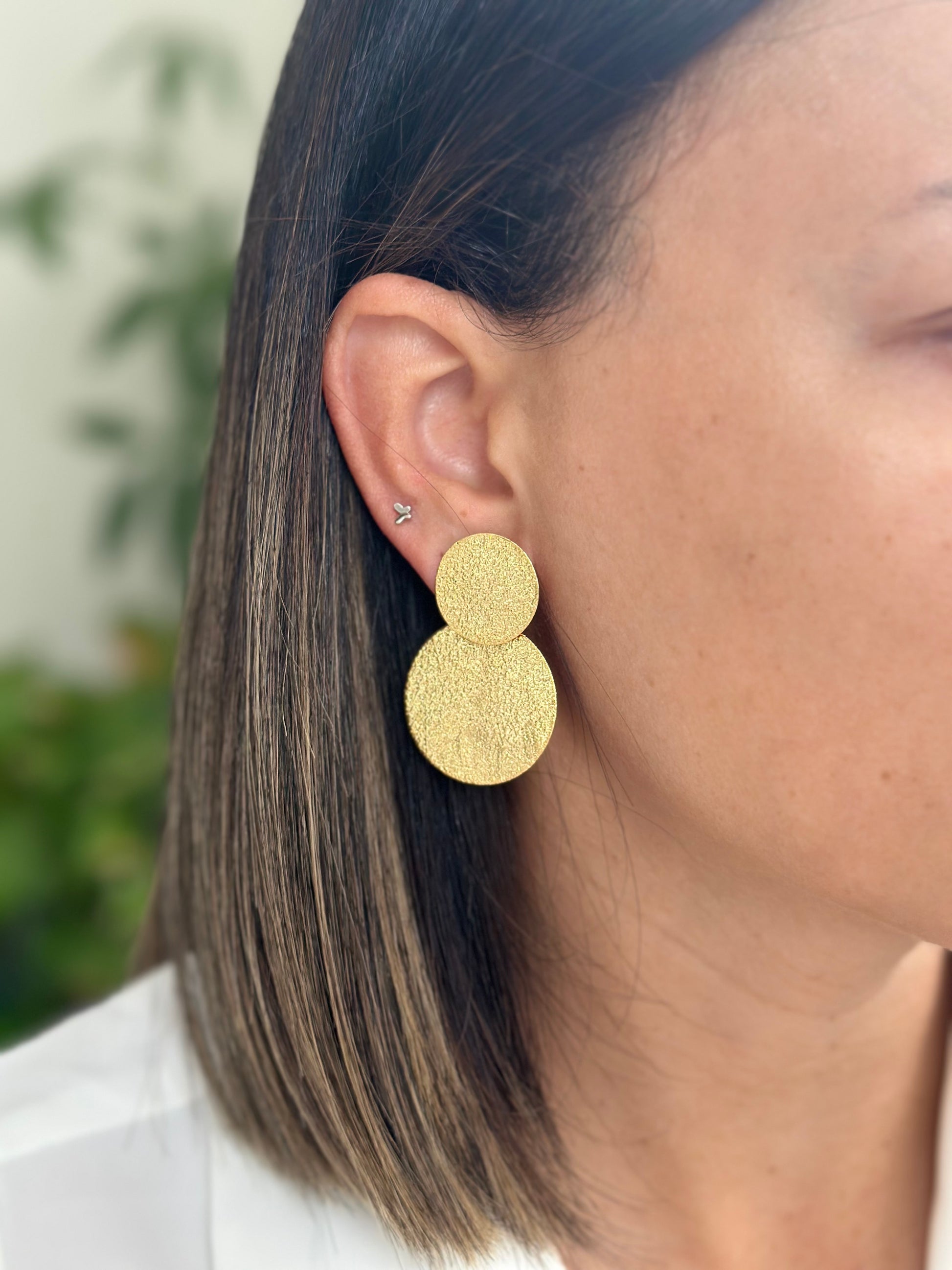 The matte textured gold finish and the multi-size circle design make them modern, versatile, and absolutely sophisticated. They're perfect for those who want to adapt to the moment without losing elegance. (HANDMADE)