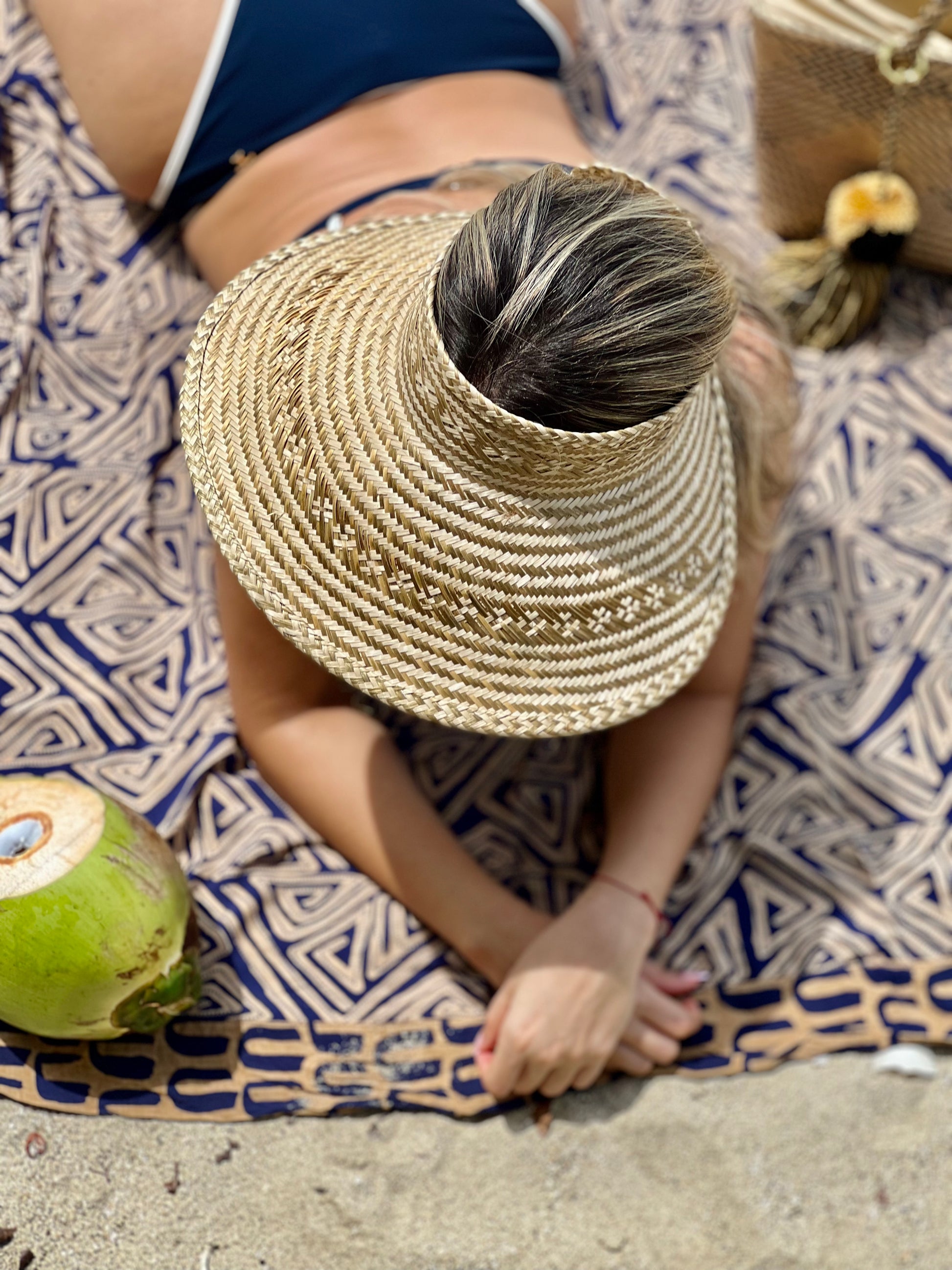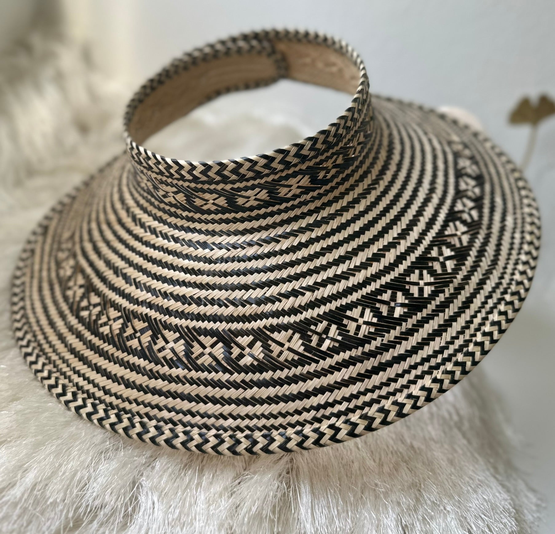 The product, VISERA FLOR BLACK, boasts a stylish sombrero crafted from palma molu and featuring a velcro closure for a secure fit.