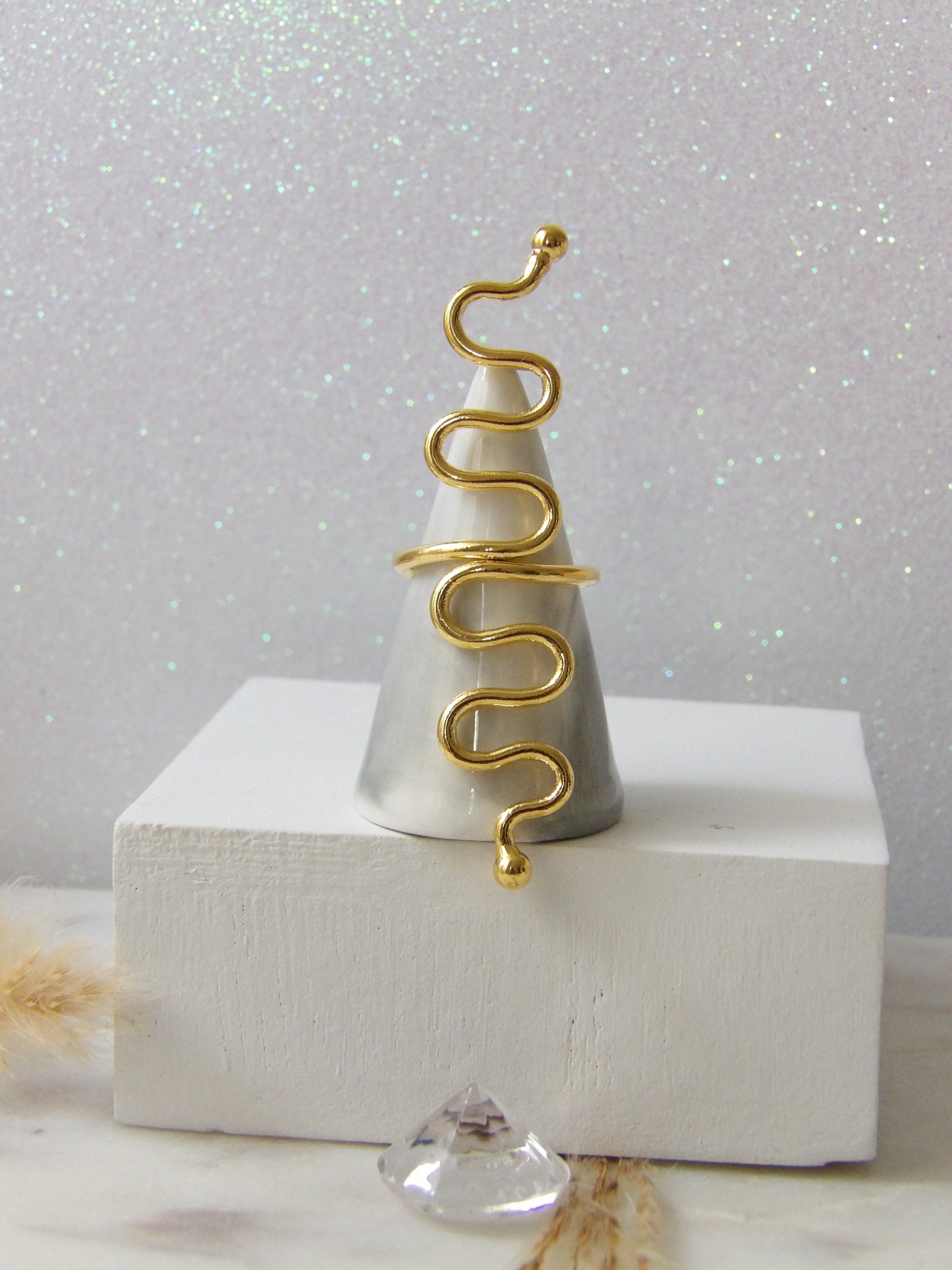 A serpentine silhouette that wraps your style with boldness. Zenda Ring is an adjustable piece handmade in gold-plated bronze, created for women who dare to stand out with an unconventional jewel.✨ Designed to inspire you. Made to stand out.